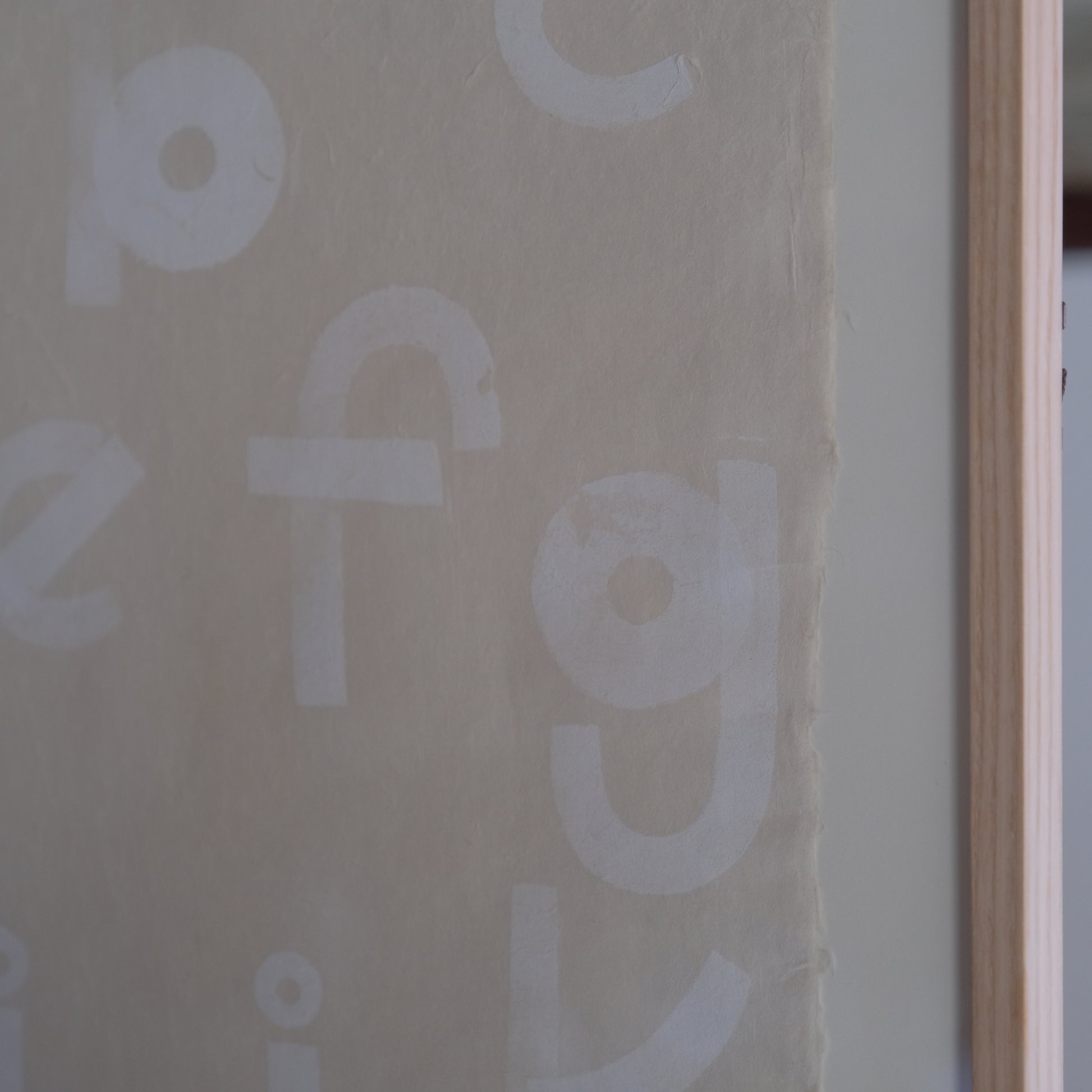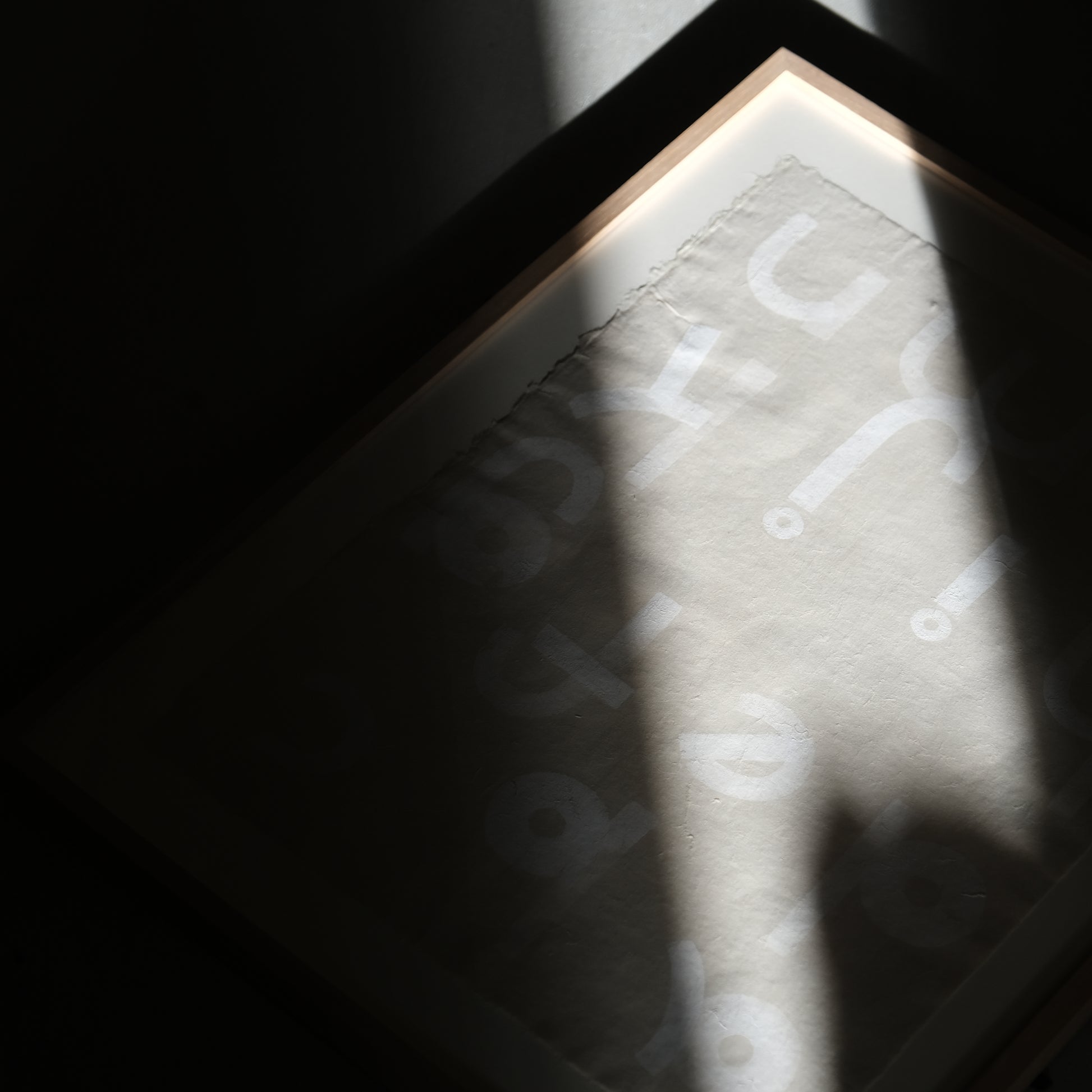 実際にご覧いただくと見る角度や光の差し方によって見える表情が変わり、その都度文字の輪郭や紙の気配がふっと立ち上がってくるようです。