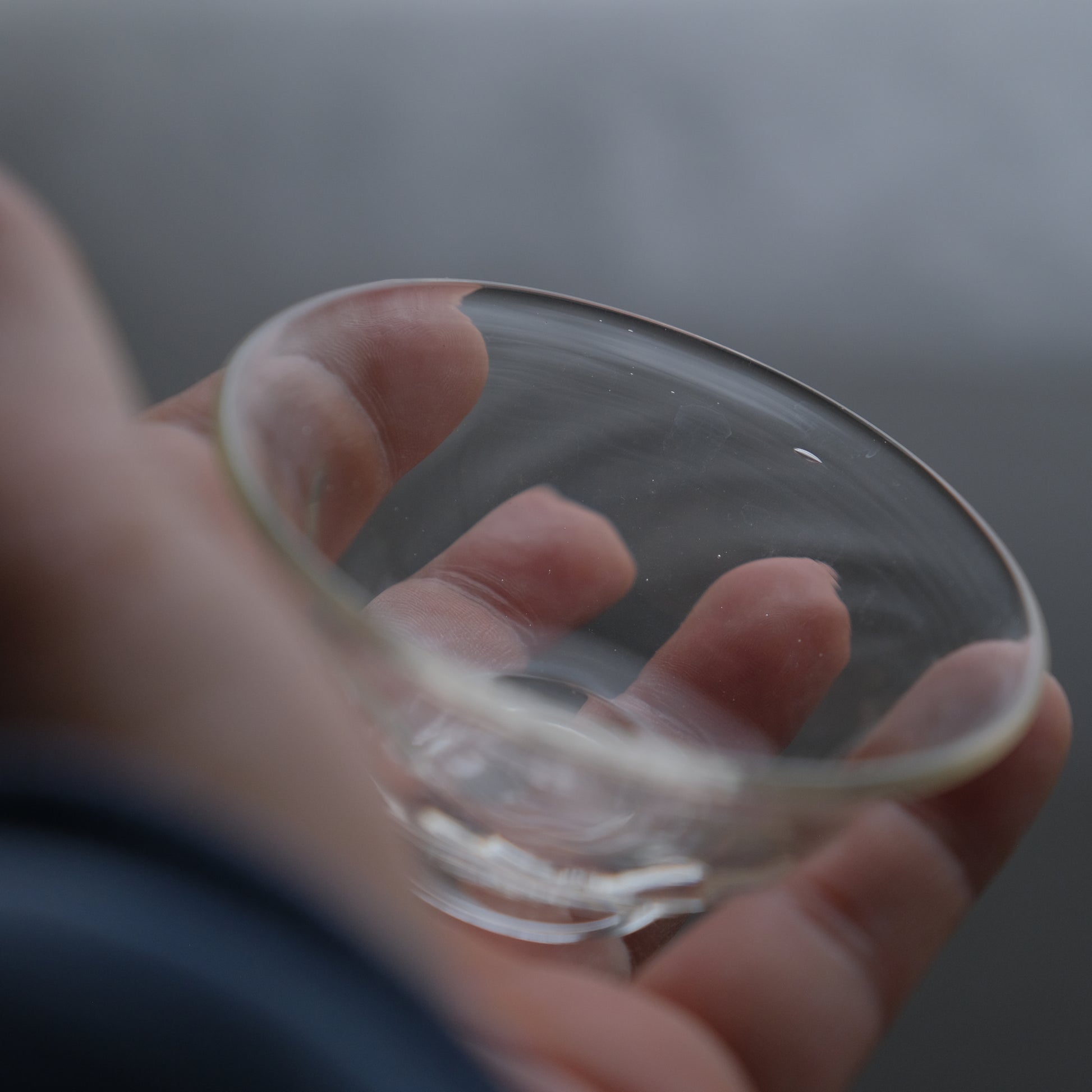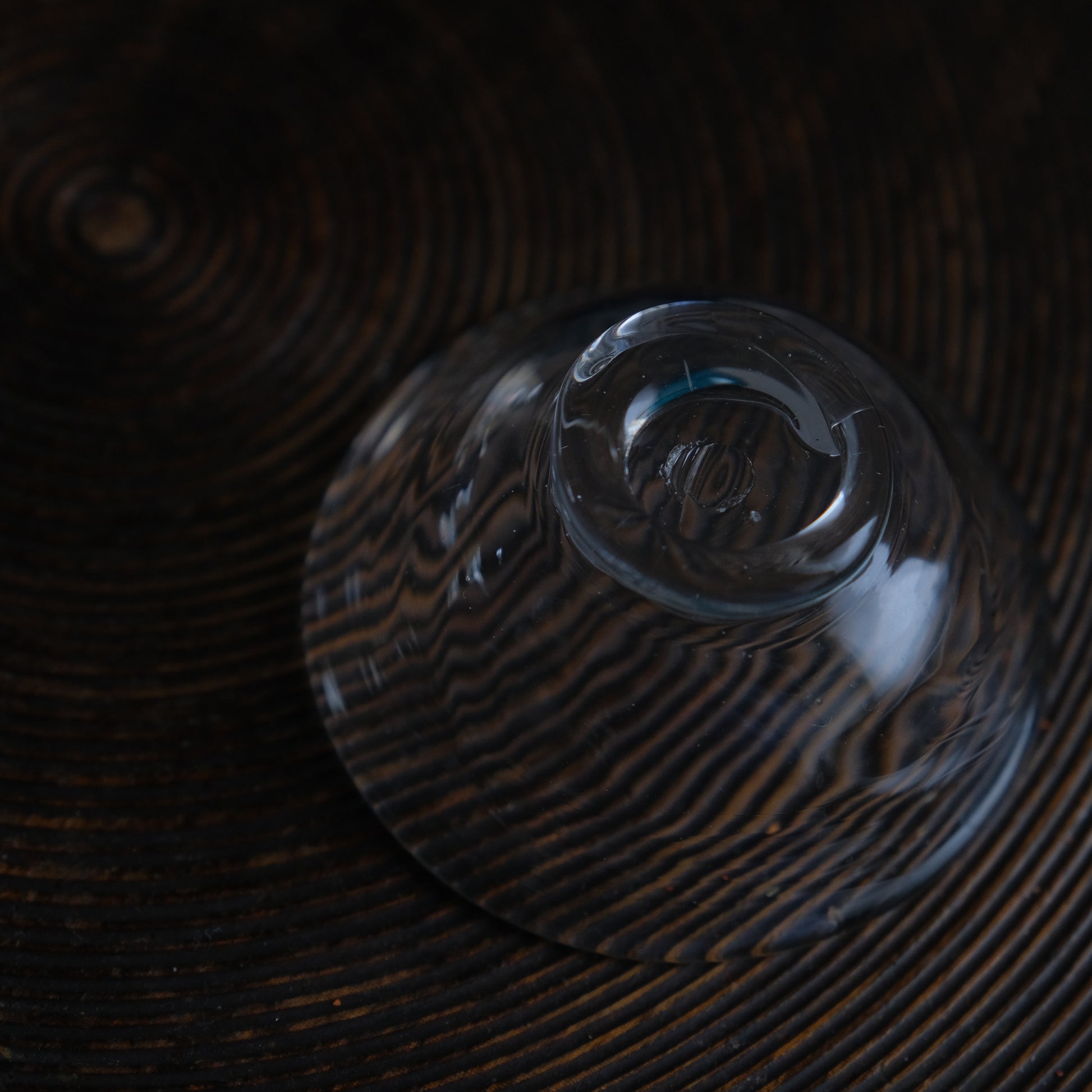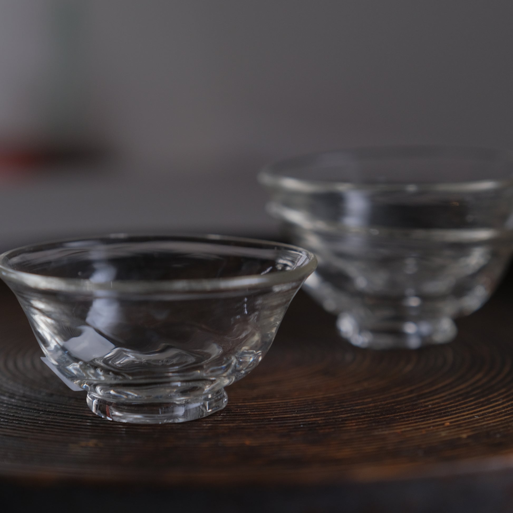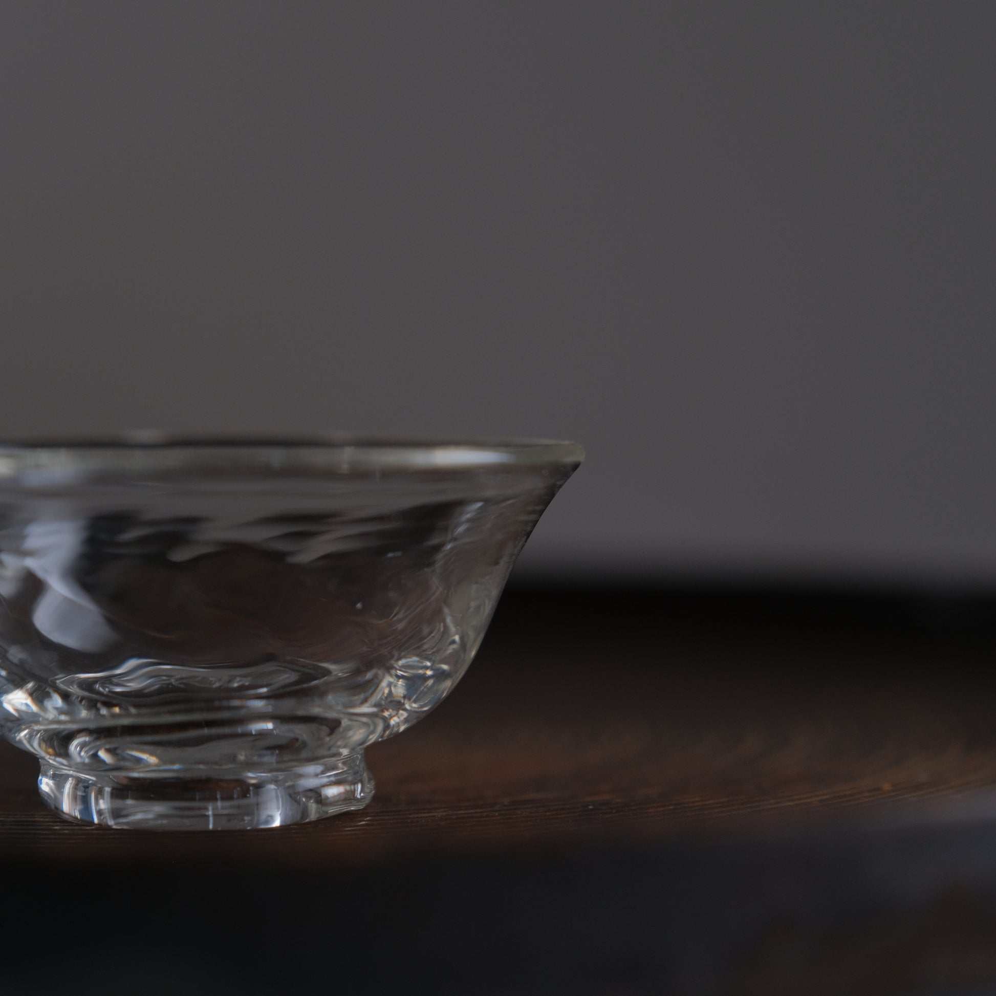 当時倉敷にある料理屋からの注文で作られたもので、やや浅めの形状となっているため酒器としても小鉢としても使いやすくなっています。倉敷民藝館初代館長”外村吉之助”の願いから生まれた倉敷のガラス工芸。眞三さんが試行錯誤の末にたどり着いたそれは現在も受け継がれ、暮らしを豊かにする道具として在り続けています。
