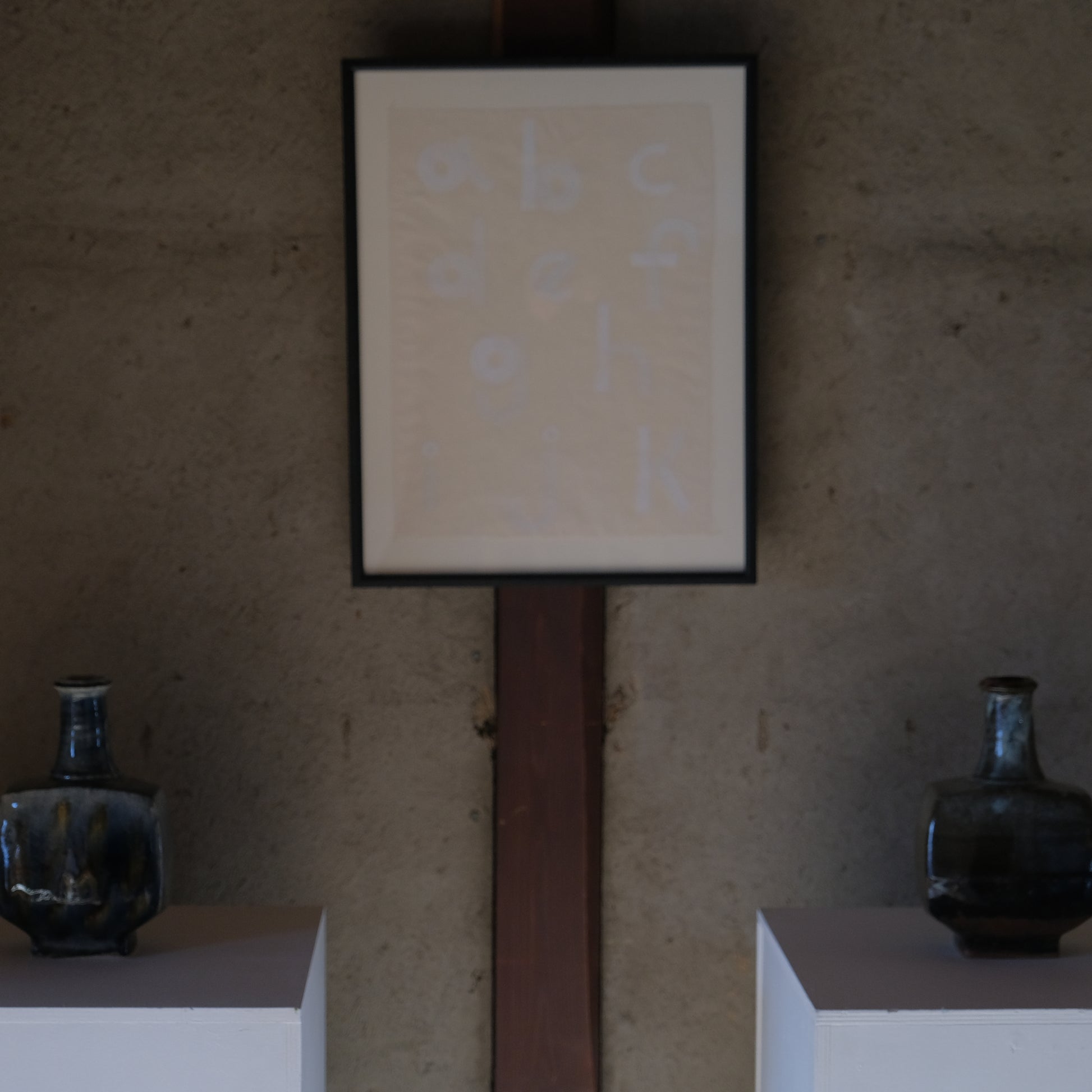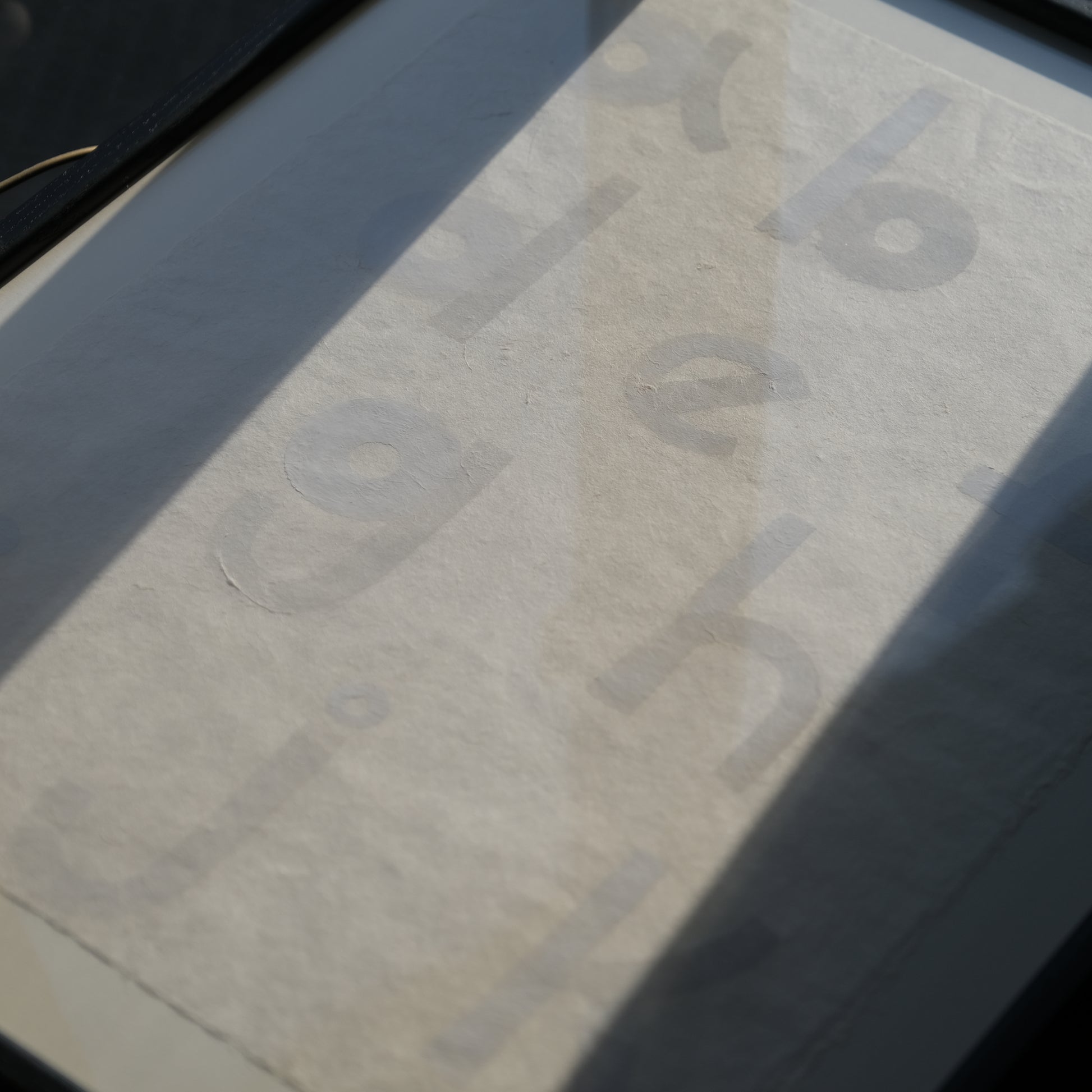 実際にご覧いただくと見る角度や光の差し方によって見える表情が変わり、その都度文字の輪郭や紙の気配がふっと立ち上がってくるようです。