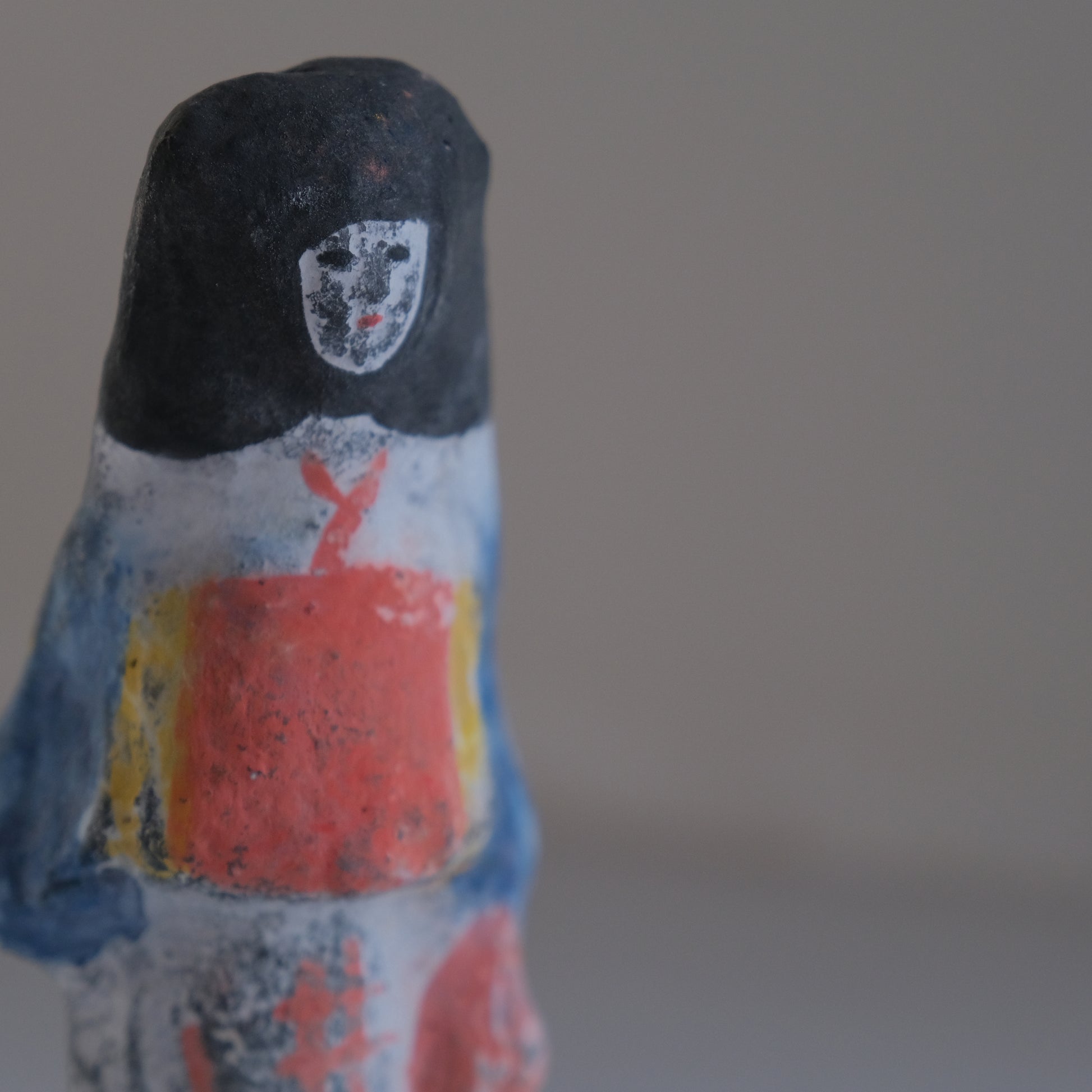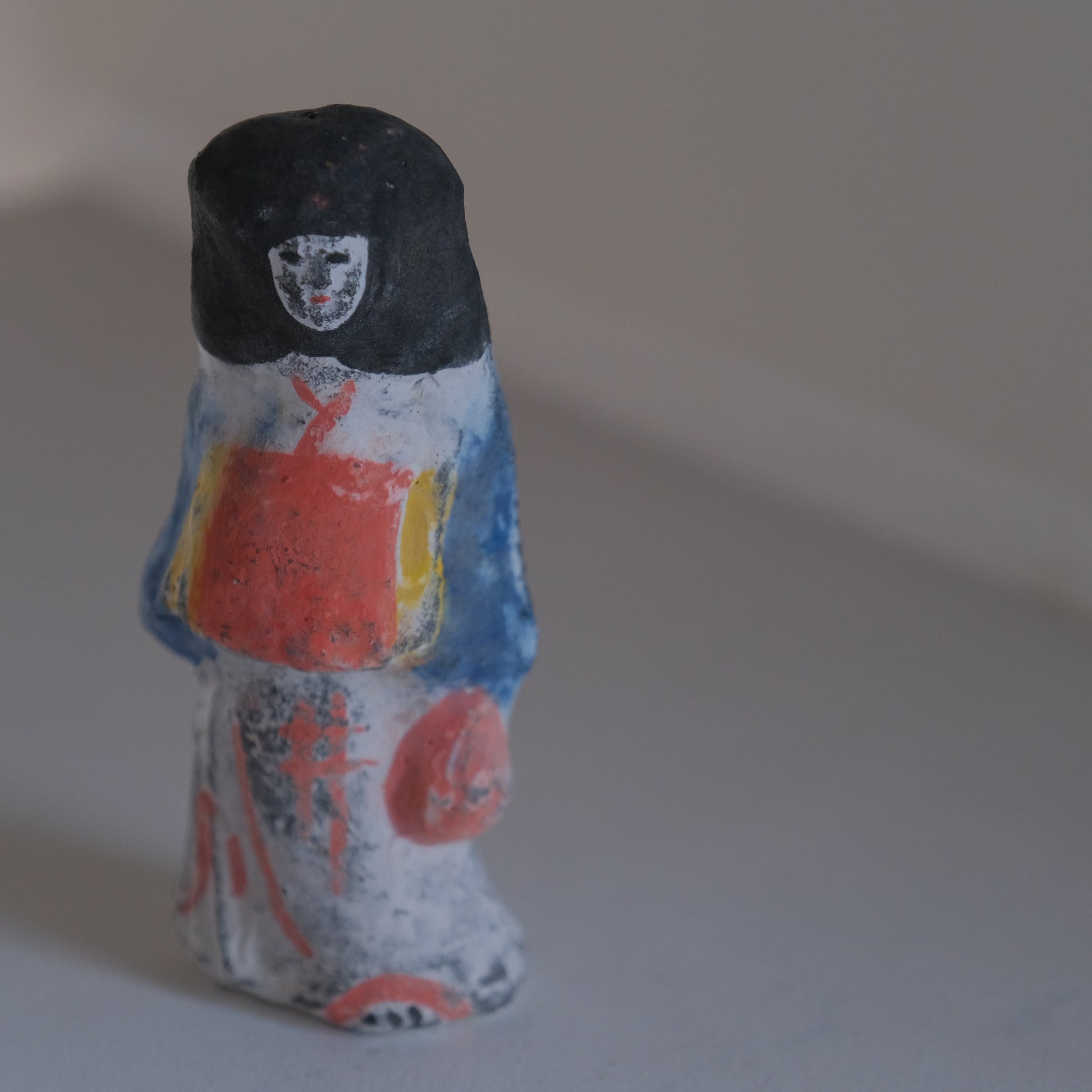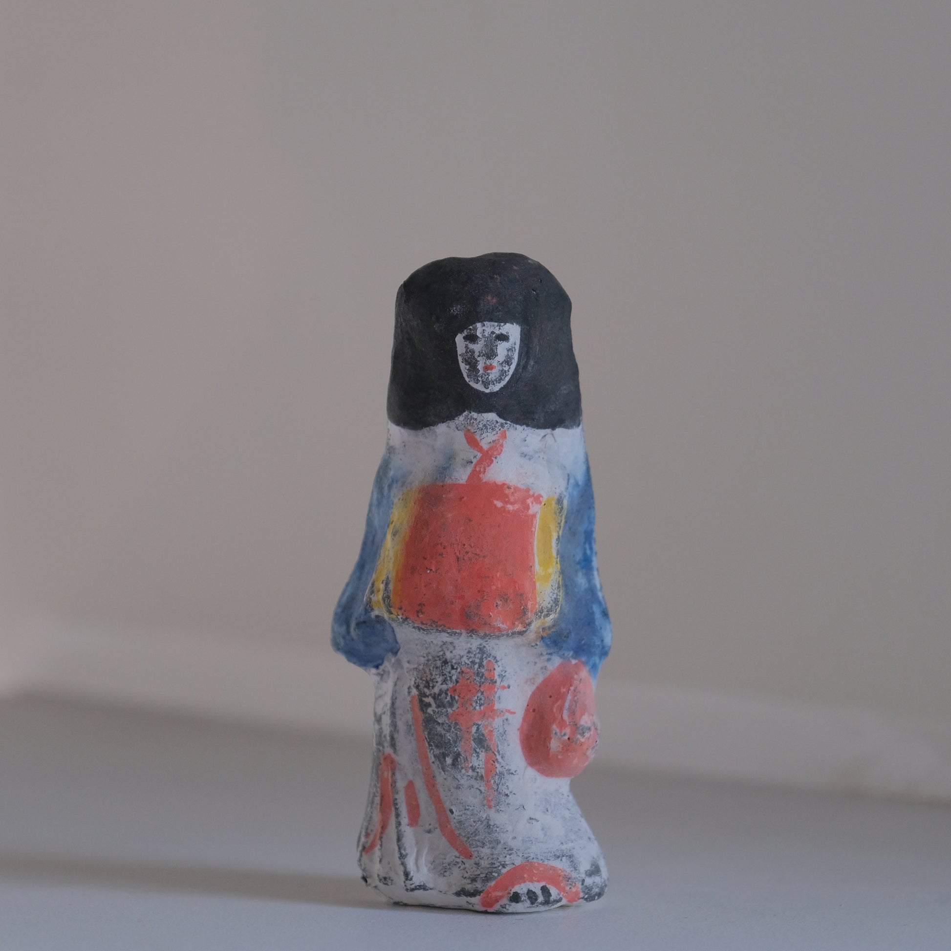 柔らかい粘土を型に詰めて成形し、一週間ほど陰干しで乾燥させた後、大量のもみ殻でゆっくりと焼き上げて作られる大和出雲人形。素朴で愛らしい表情と鮮やかな色彩が魅力の、奈良に古くから伝わる伝統工芸品です。手に取った時のずっしり感も特徴で、ひとつひとつに手仕事ならではの温もりが感じられます。