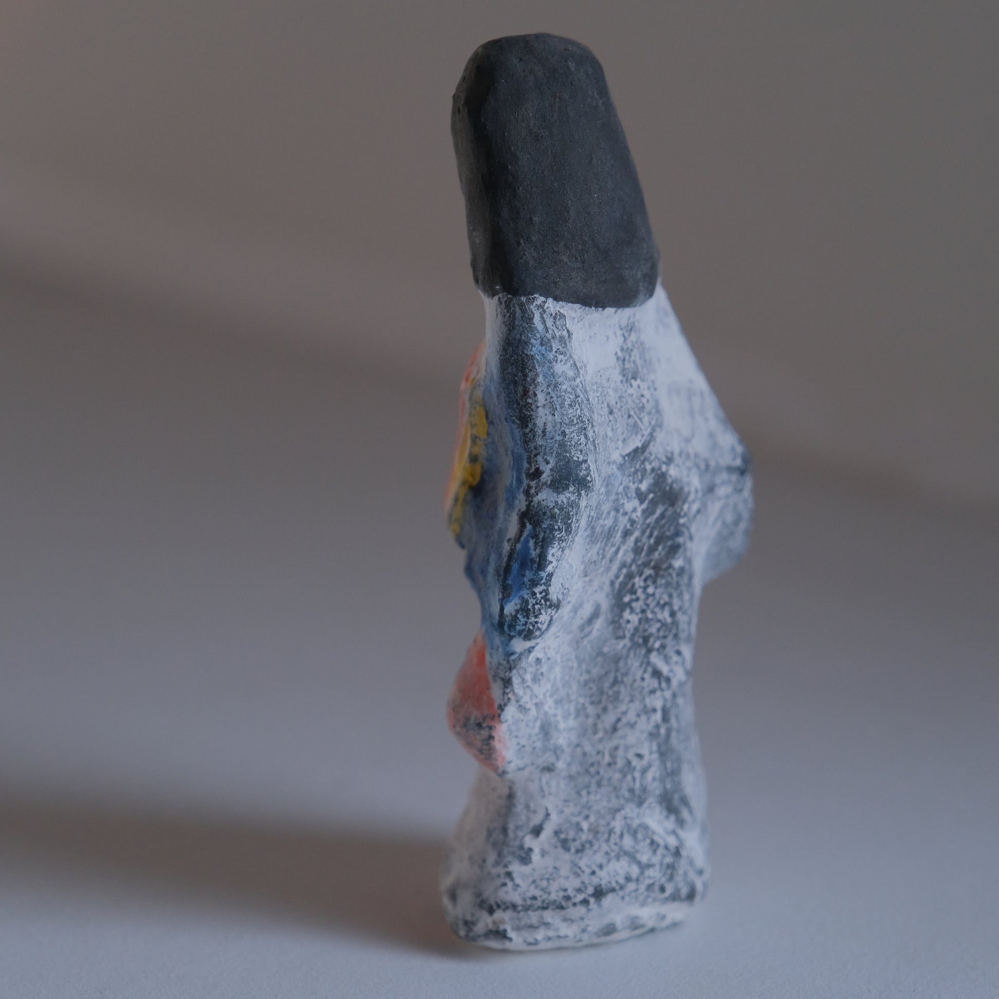 古い個体ならではの味わいある土の風合いが感じられる「御高祖頭巾」。