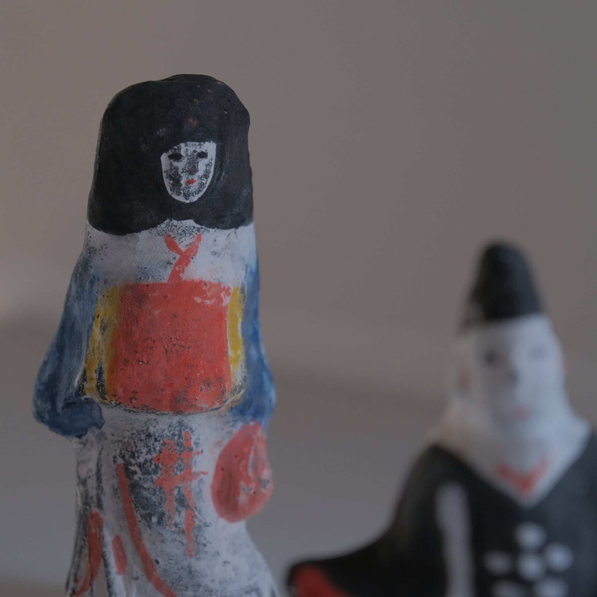 江戸時代の女性の流行のファッション(防寒具)がモチーフになっていて、古墳を守る埴輪のように家を守る縁起物としての意味が込められています。