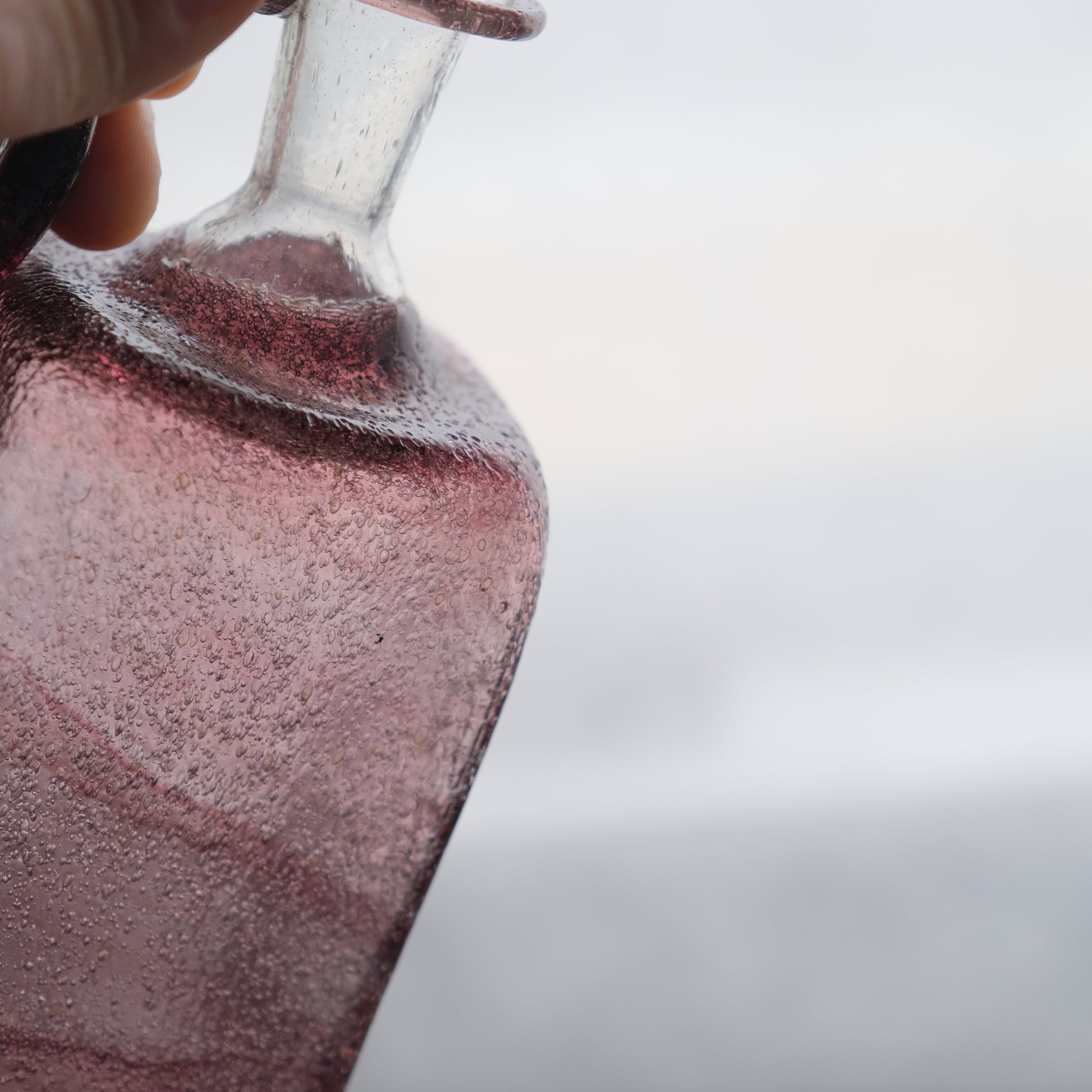 徳利やデキャンタのように酒器としてもお使いいただけますし、細めの口は花瓶としても使いやすいと思います。倉敷民藝館初代館長”外村吉之助”の願いから生まれた倉敷のガラス工芸。眞三さんが試行錯誤の末にたどり着いたそれは現在も受け継がれ、暮らしを豊かにする道具として在り続けています。