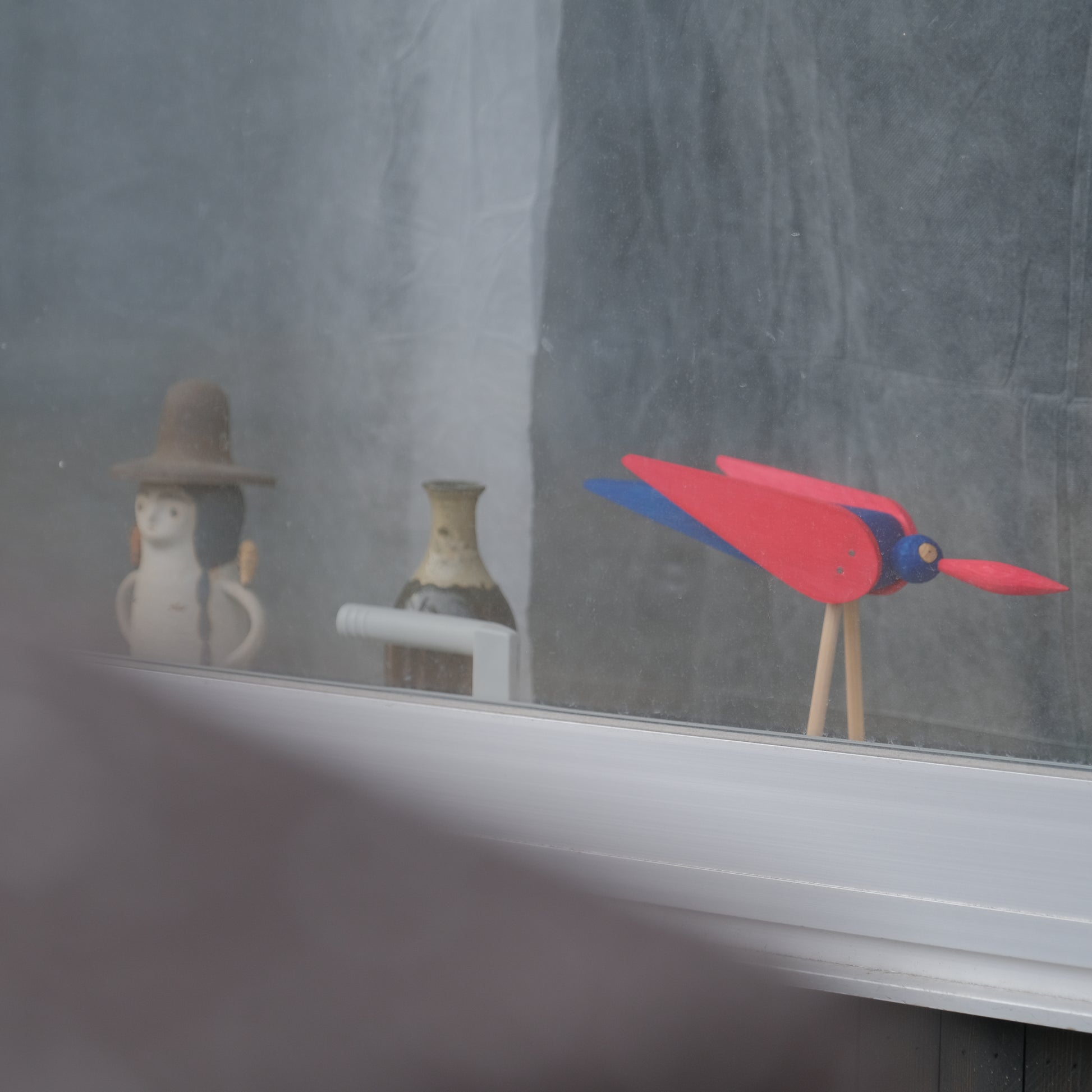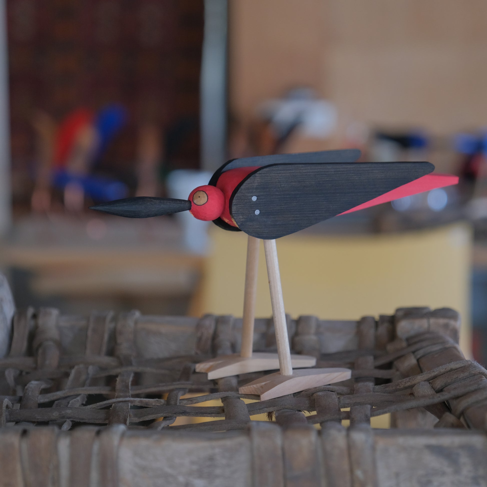とてもチャーミングで、心が躍るような感覚を覚える木彫のトリのオブジェ。