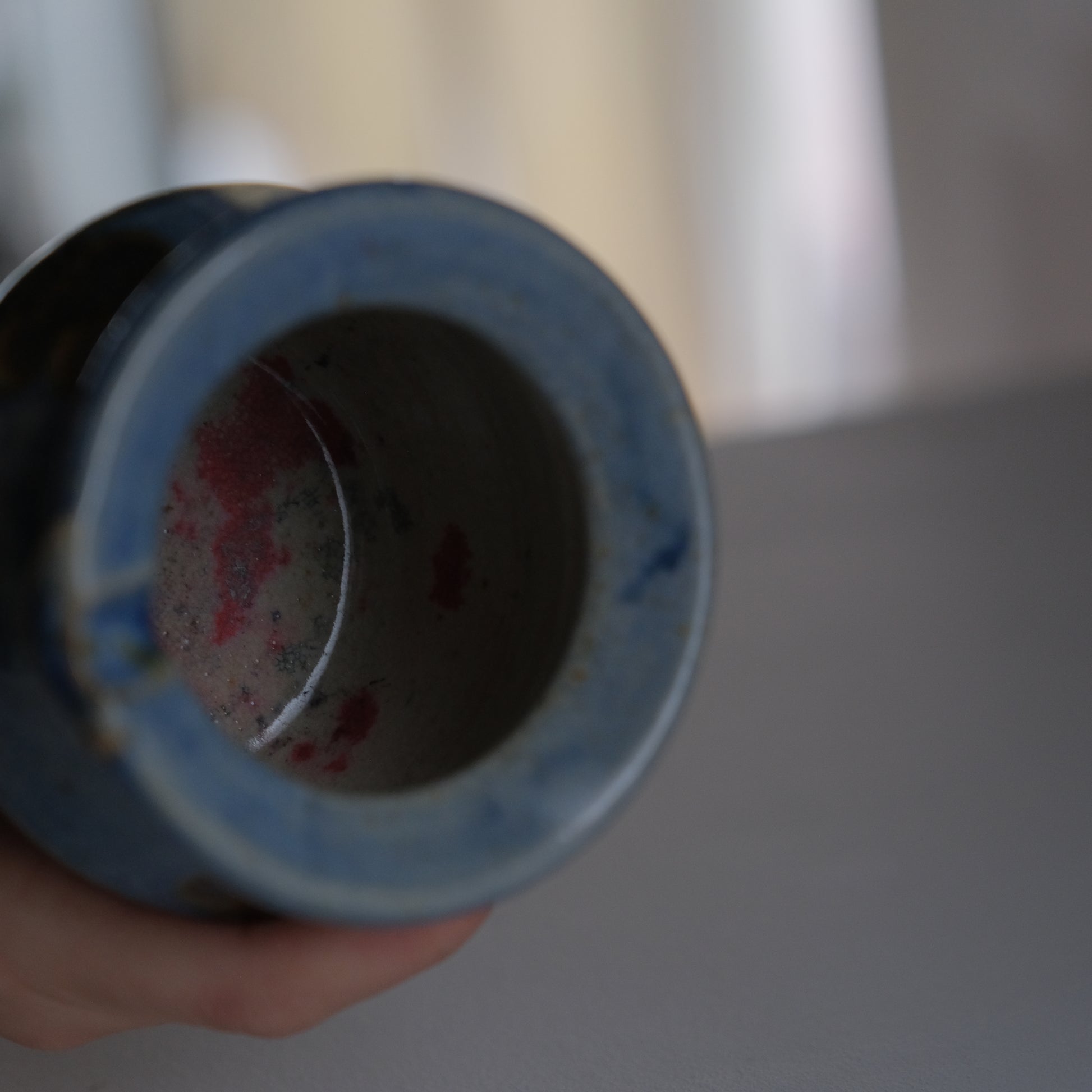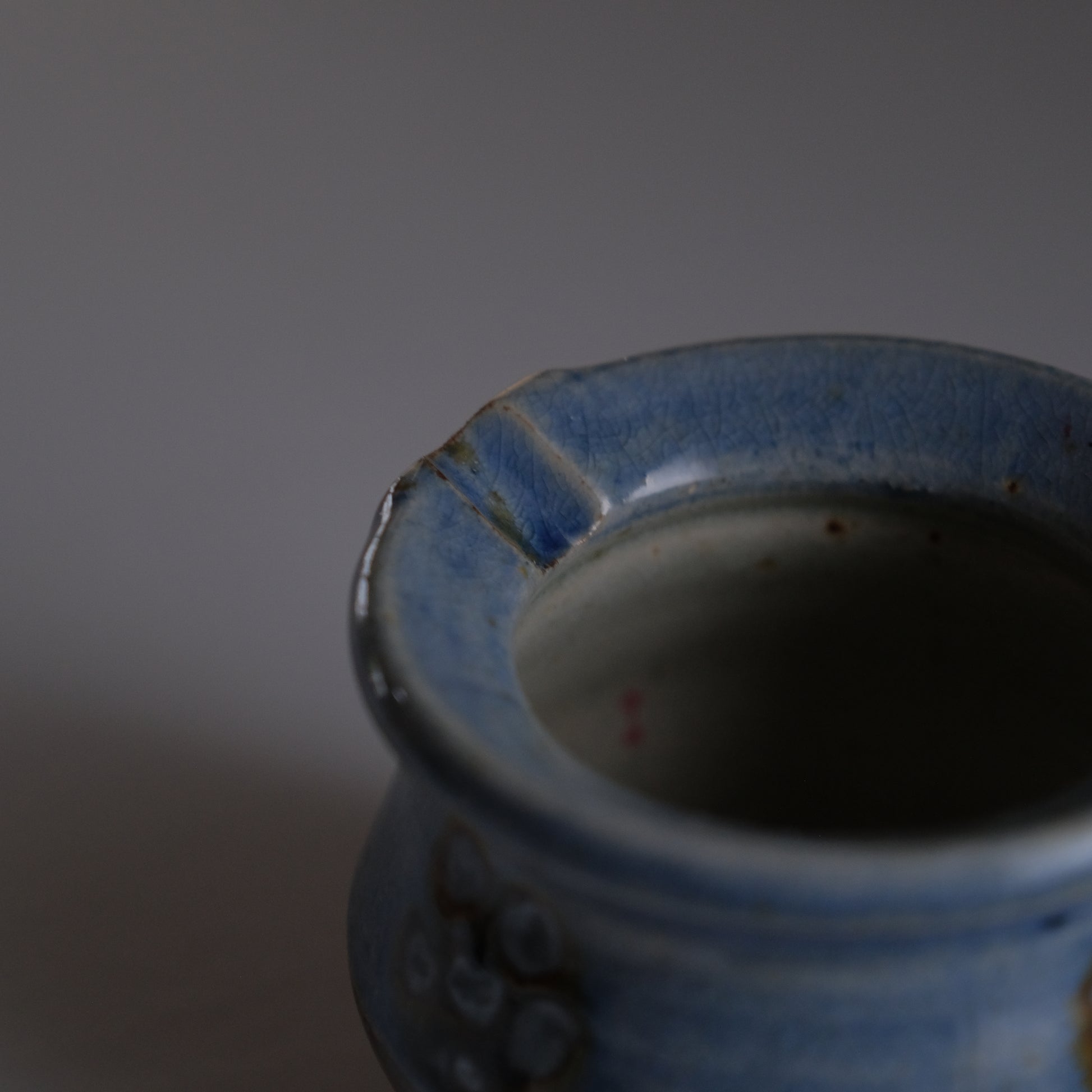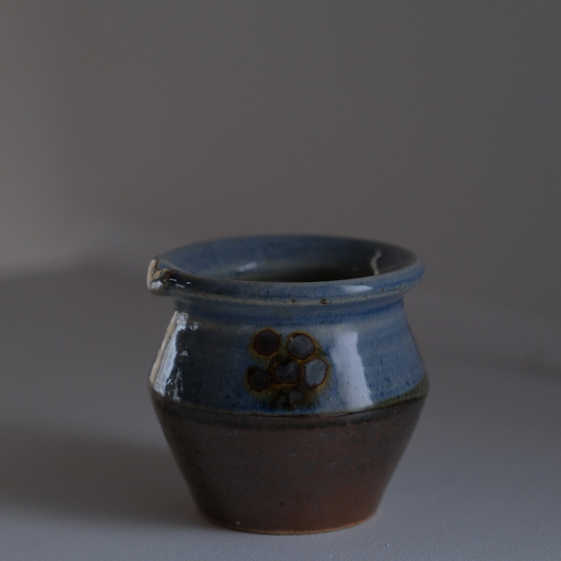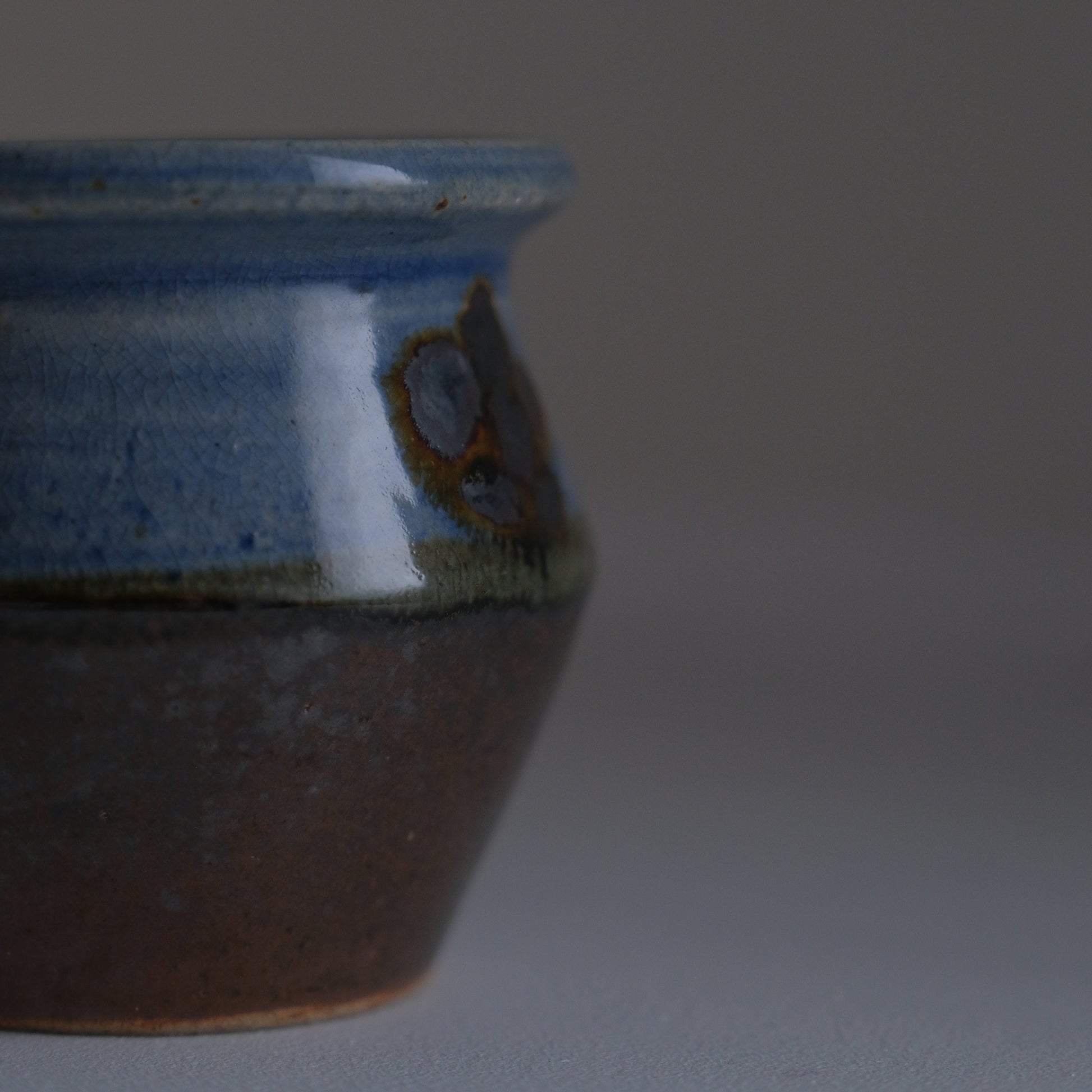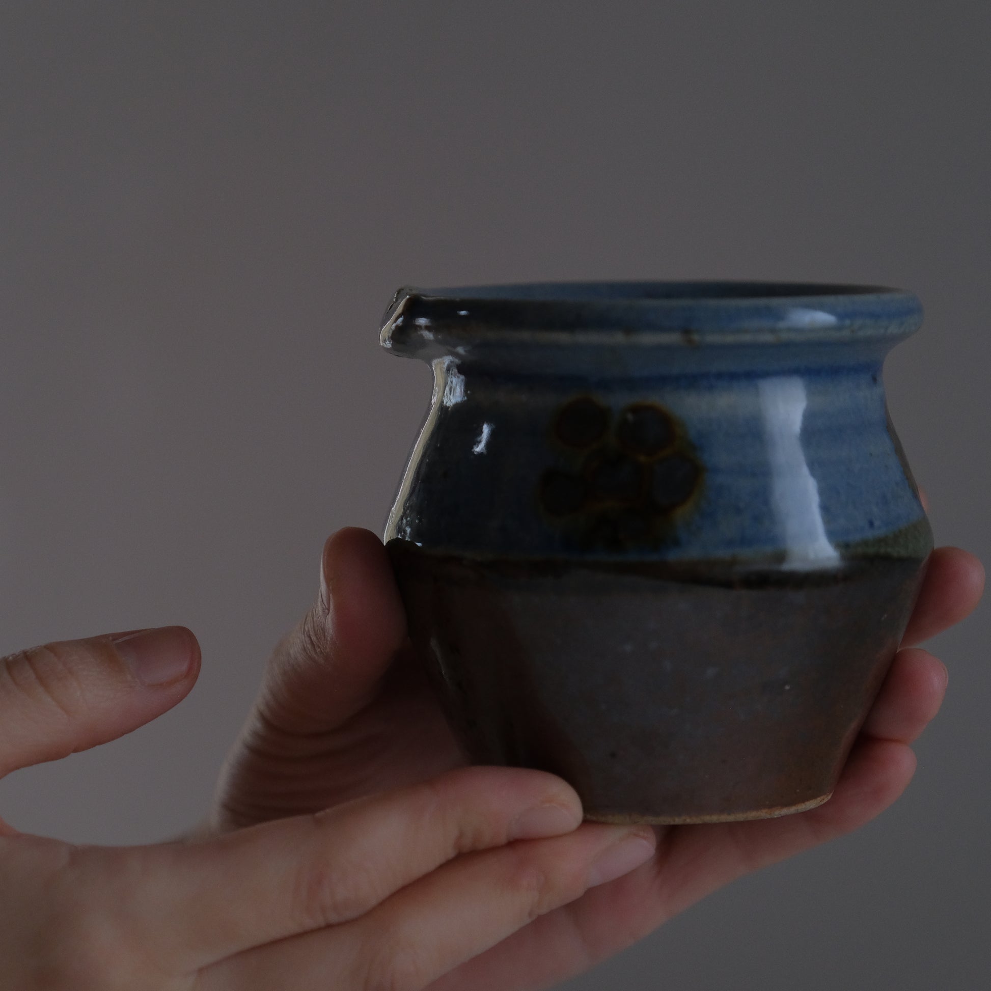 淡い呉須の青と力強い鉄釉の流れが美しくそのフォルムは灰皿としてだけではなくペン立てなどに見立てて使用するのにも良さそうです。日本一の轆轤の使い手とも称された初代小河原虎吉さんが窯を築かれてから76年。民藝の精神を体現する窯として愛されてきましたが2022年に閉窯。今なお根強いファンも多く大切にしていきたい器の一つです。