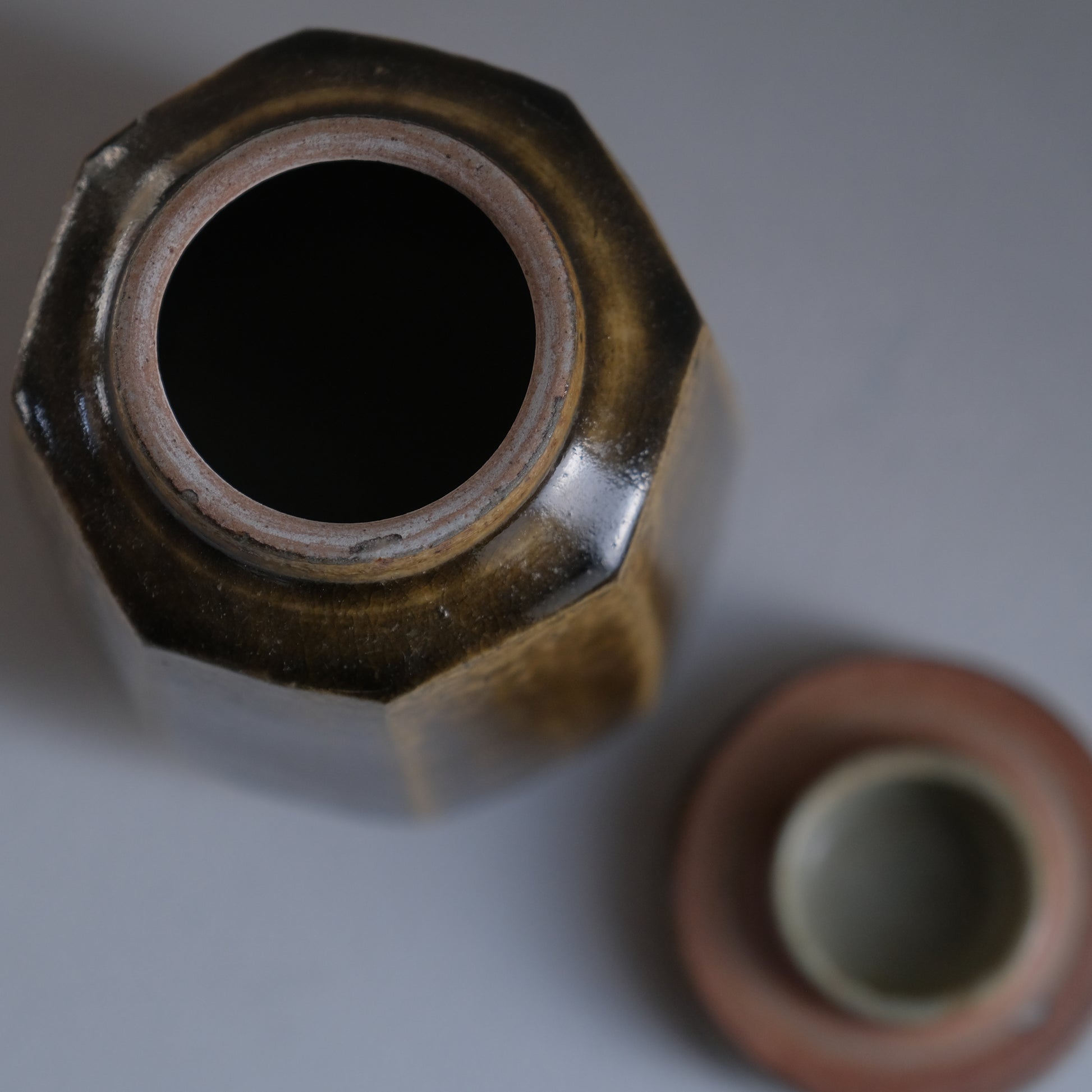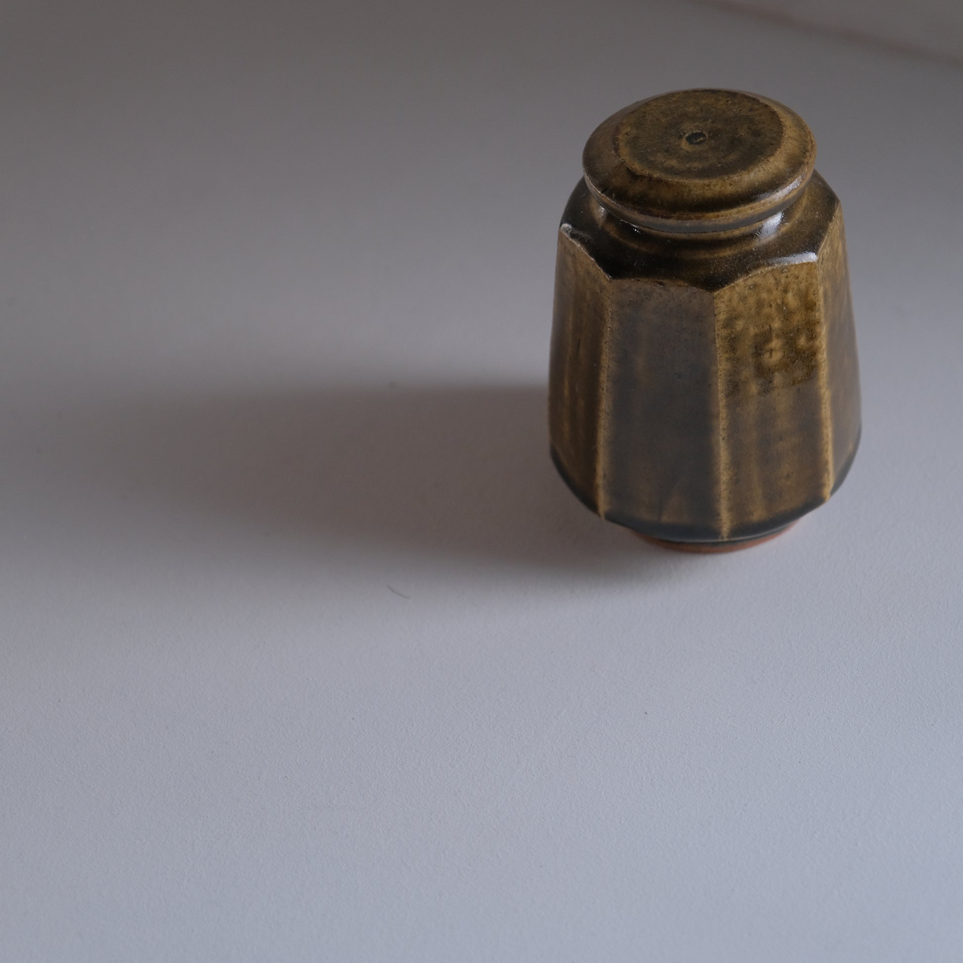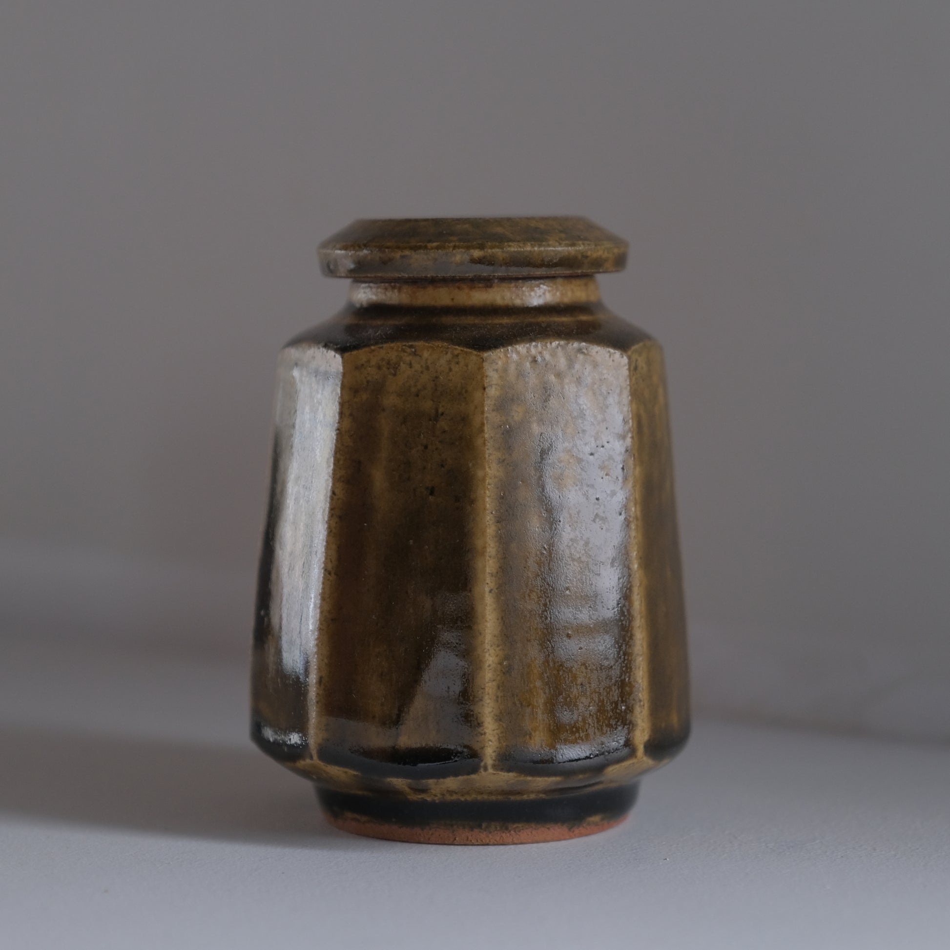 各部の面取が際立つキリッとした造形が魅力的で茶筒などとして使用するのも良さそうです。日本一の轆轤の使い手とも称された初代小河原虎吉さんが窯を築かれてから76年。民藝の精神を体現する窯として愛されてきましたが2022年に閉窯。今なお根強いファンも多く大切にしていきたい器の一つです。