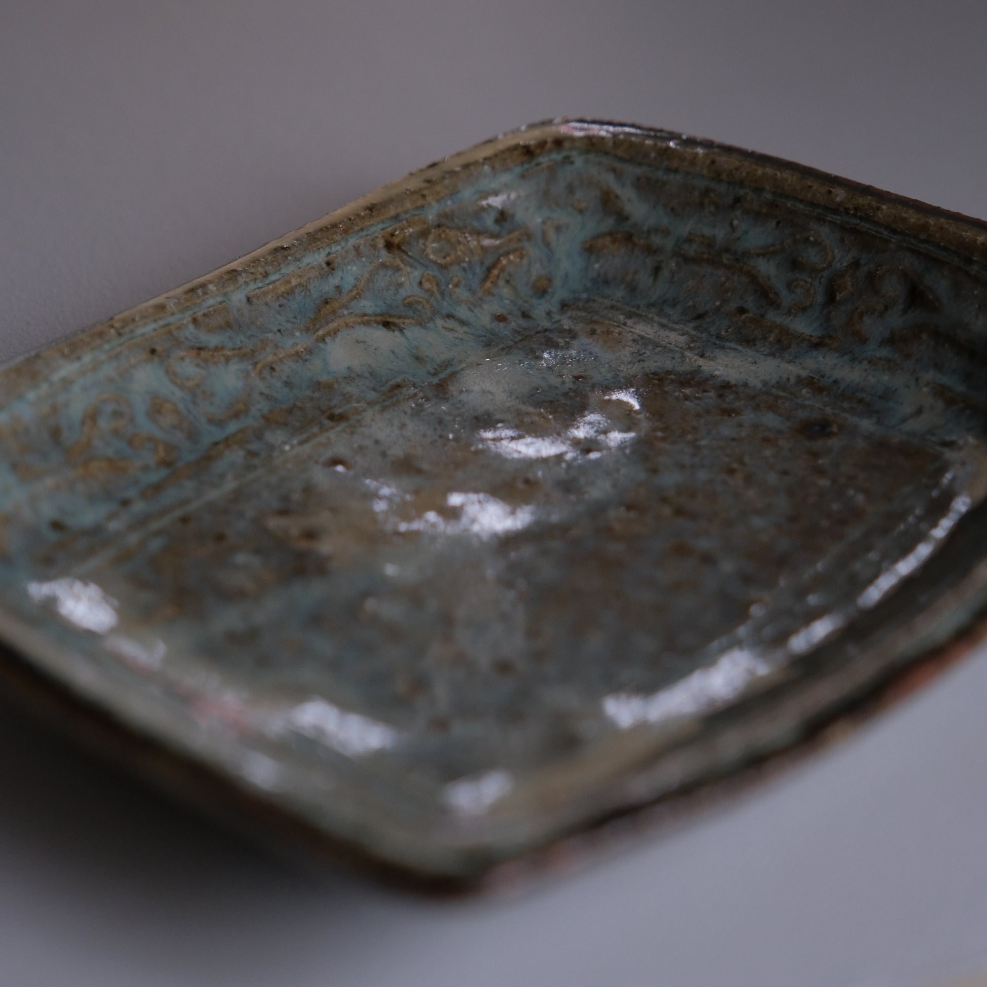 糠釉紋押角皿 / 倉敷青木窯(三宅康太)