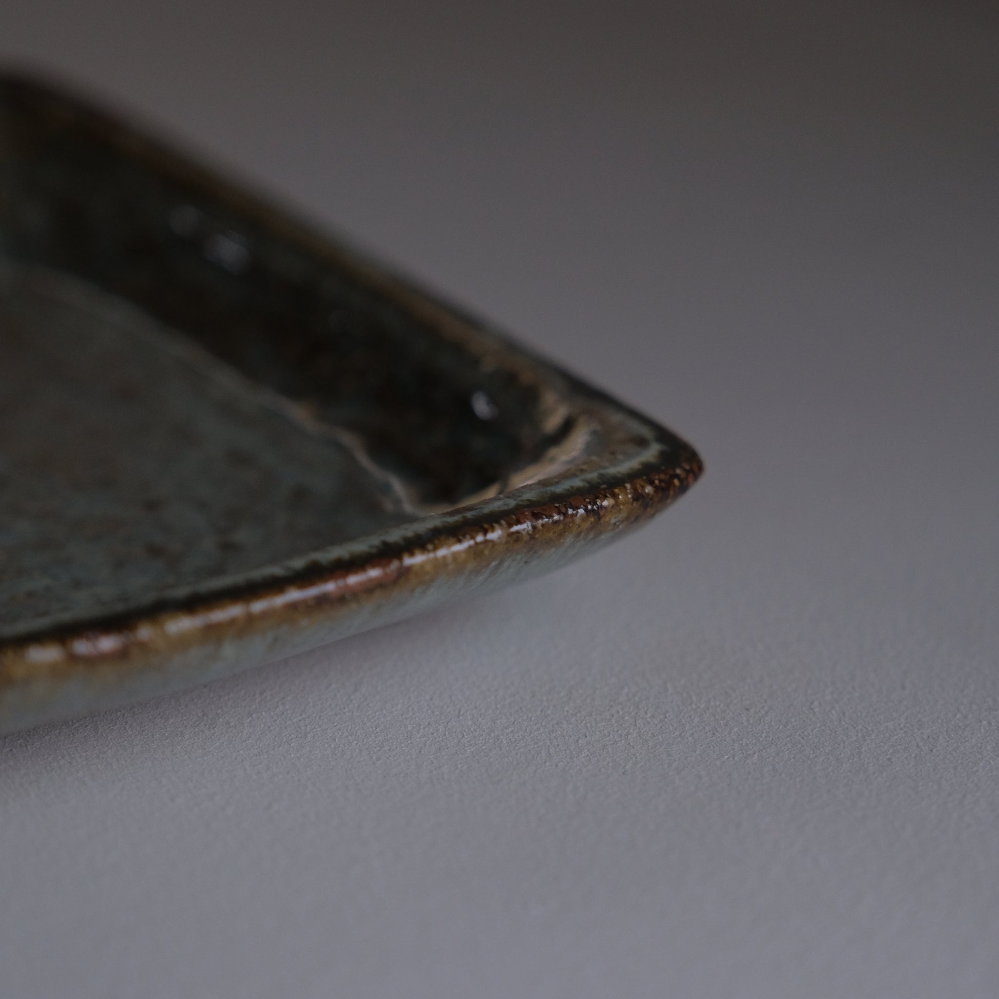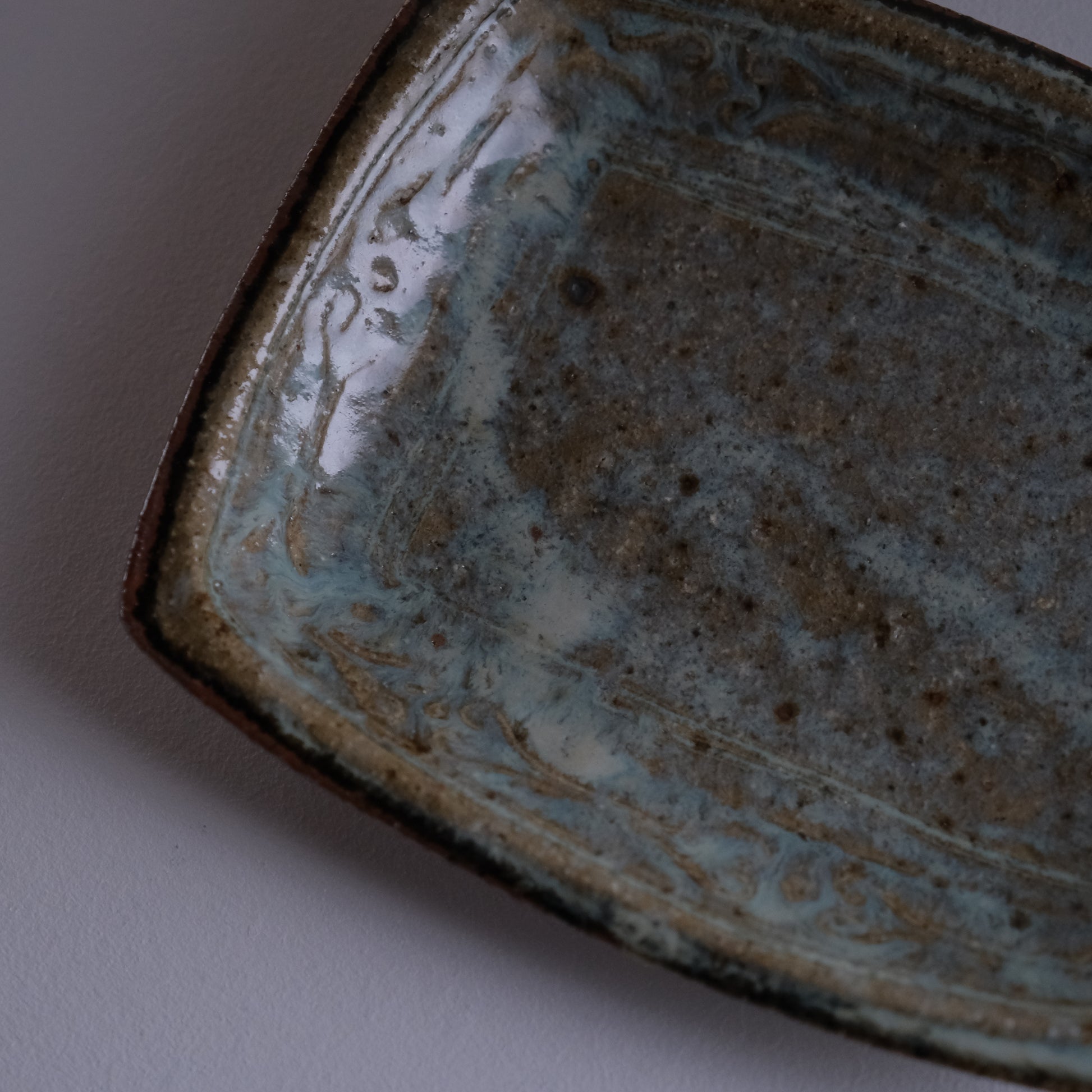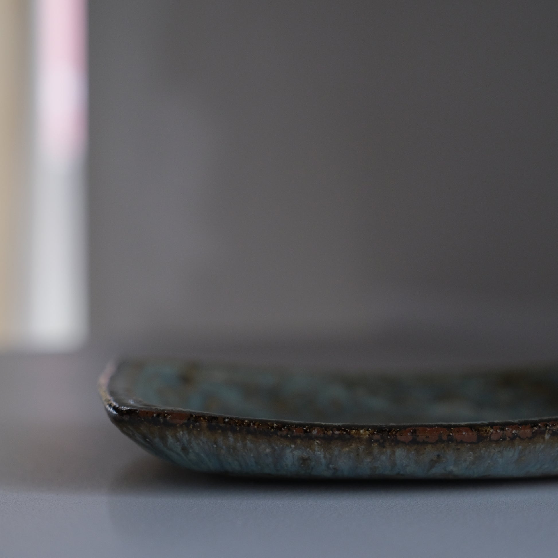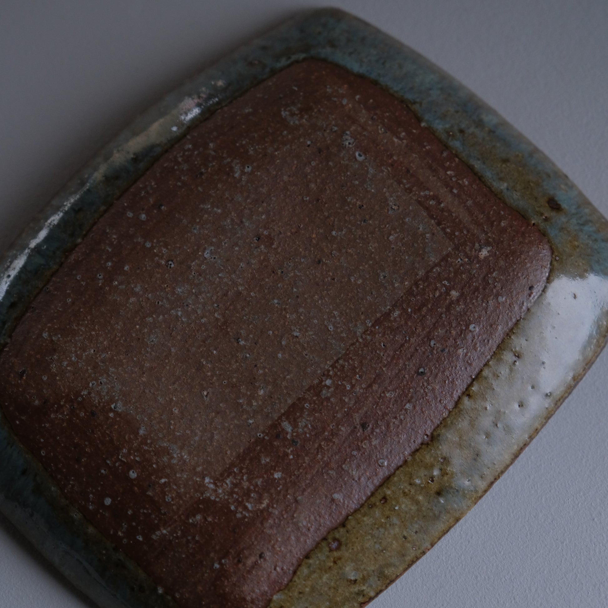 民藝が根付く街、岡山県倉敷市にて作陶されている倉敷青木窯 三宅康太さんによる角皿。かつての倉敷のやきものに憧れを持ちながら独自の感性で生み出される三宅さんの器は力強く、民藝の魅力とエネルギーに溢れています。また古くから倉敷の民窯で使用されてきた倉敷市酒津の土を独自に配合することで生まれる独特の土味も魅力的です。
