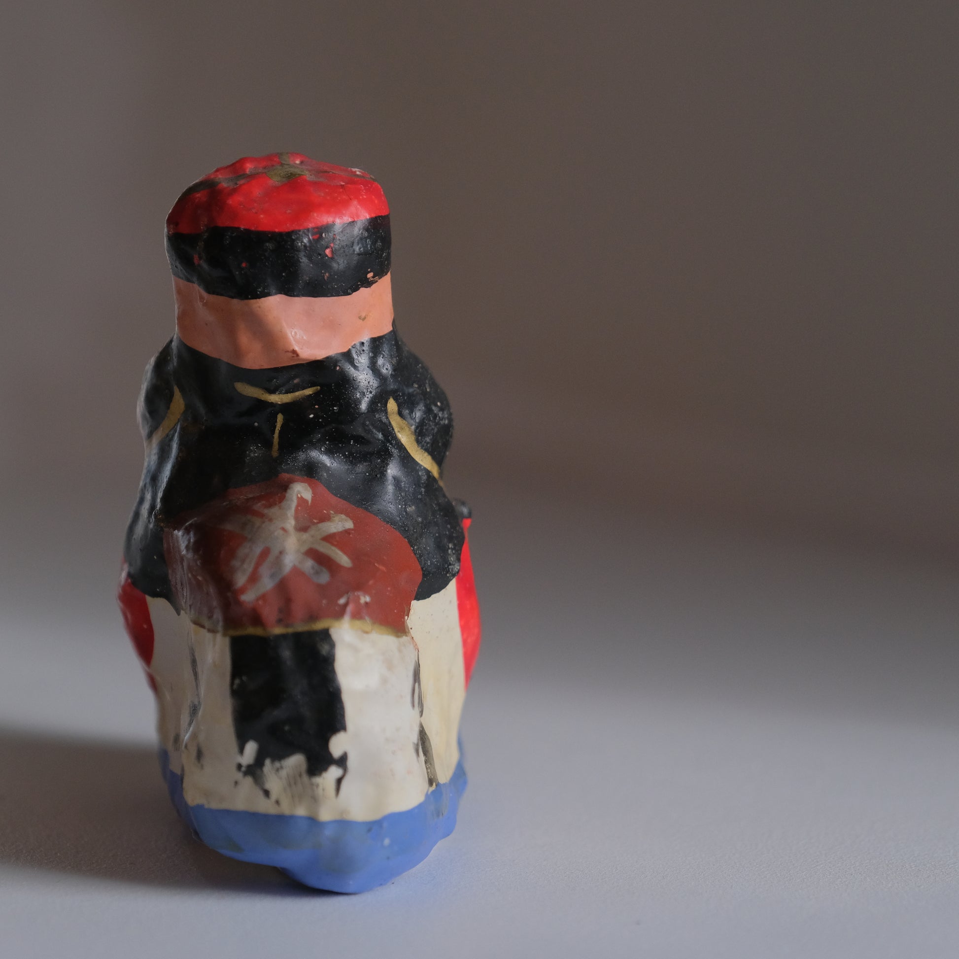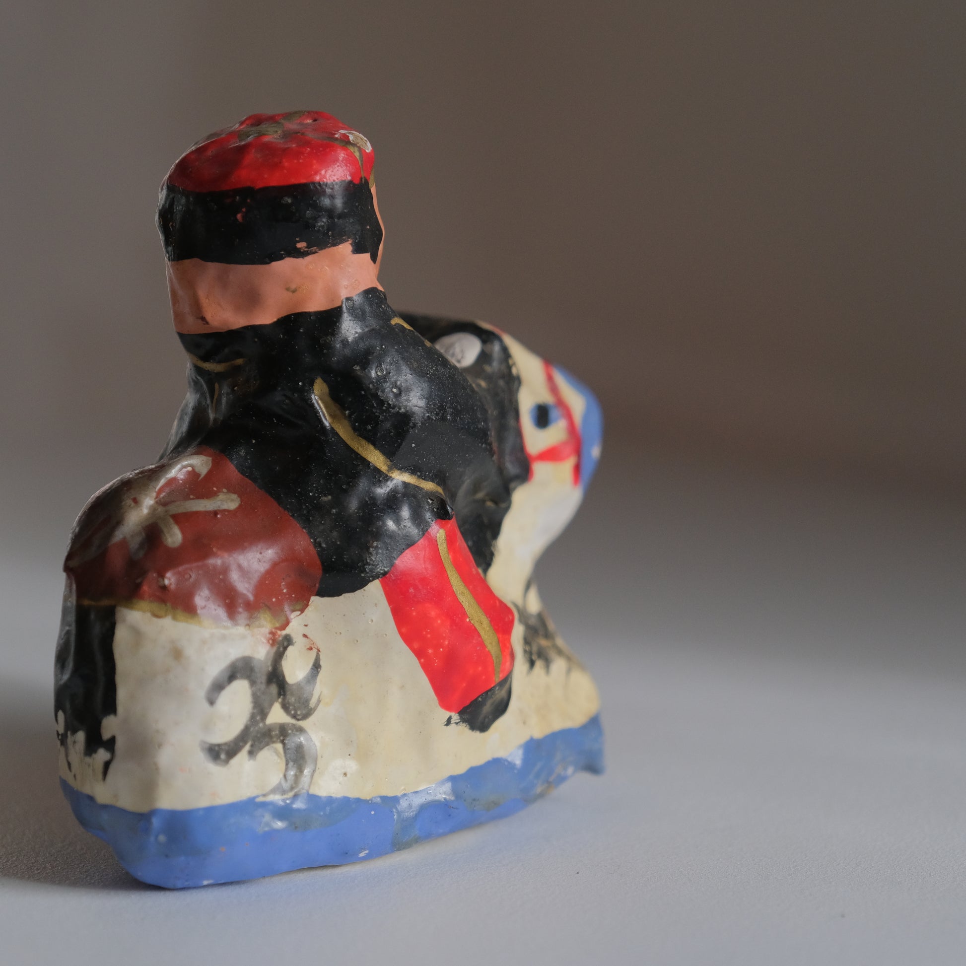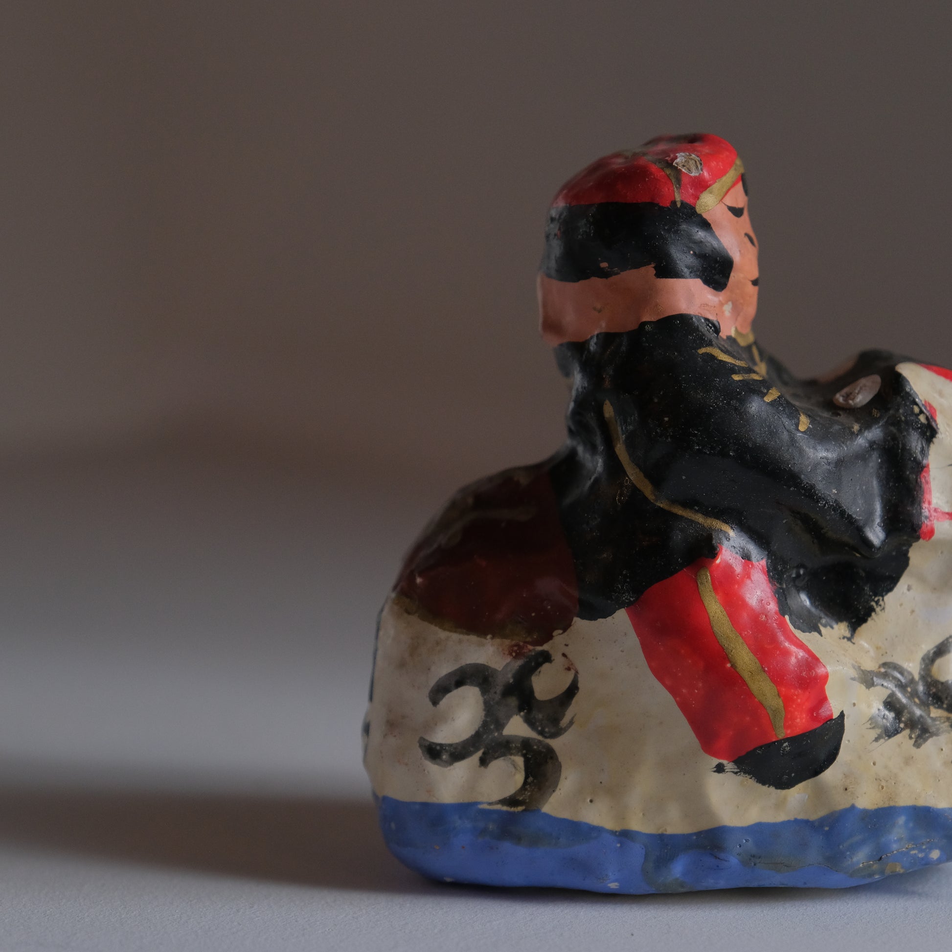 明治時代に人々の間で人気のあった軍服を纏い馬に乗った軍人がモチーフとなっています。こちらは郷土玩具の作り手としてその名を知られる"宮内フサ"さ