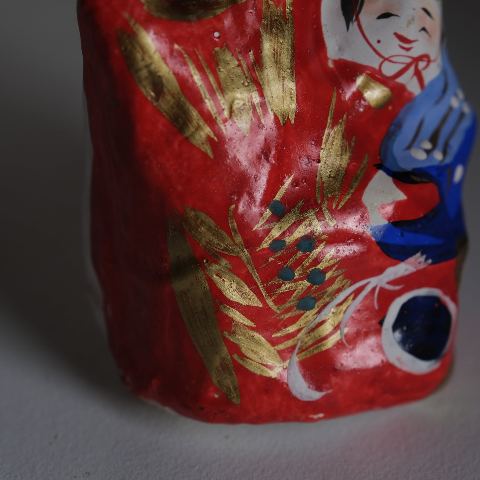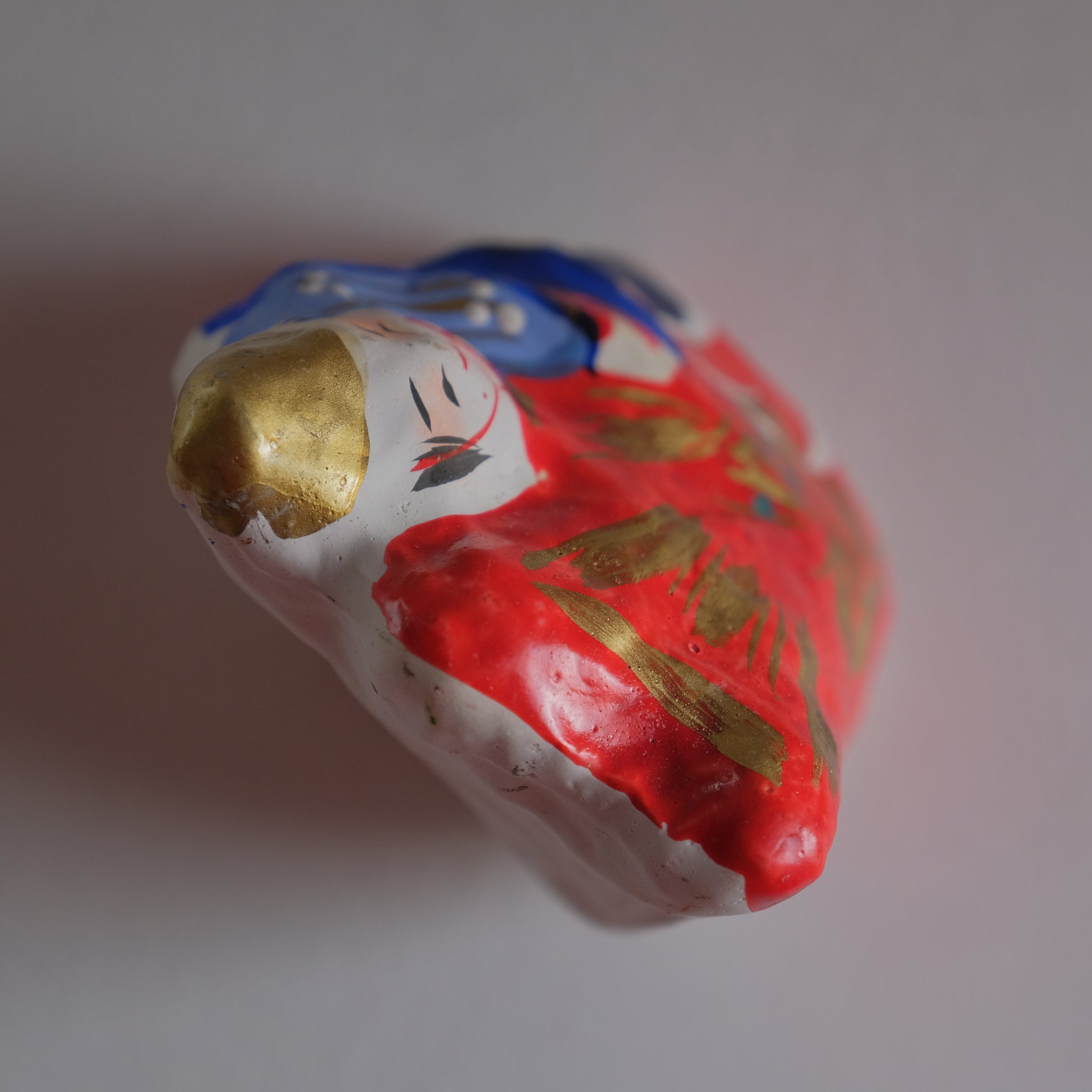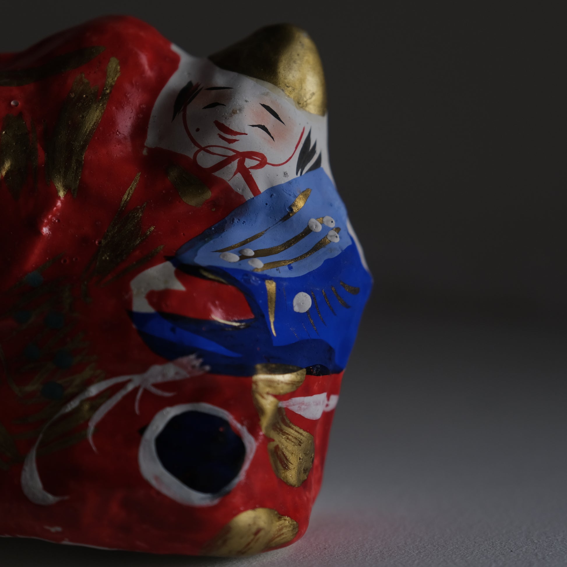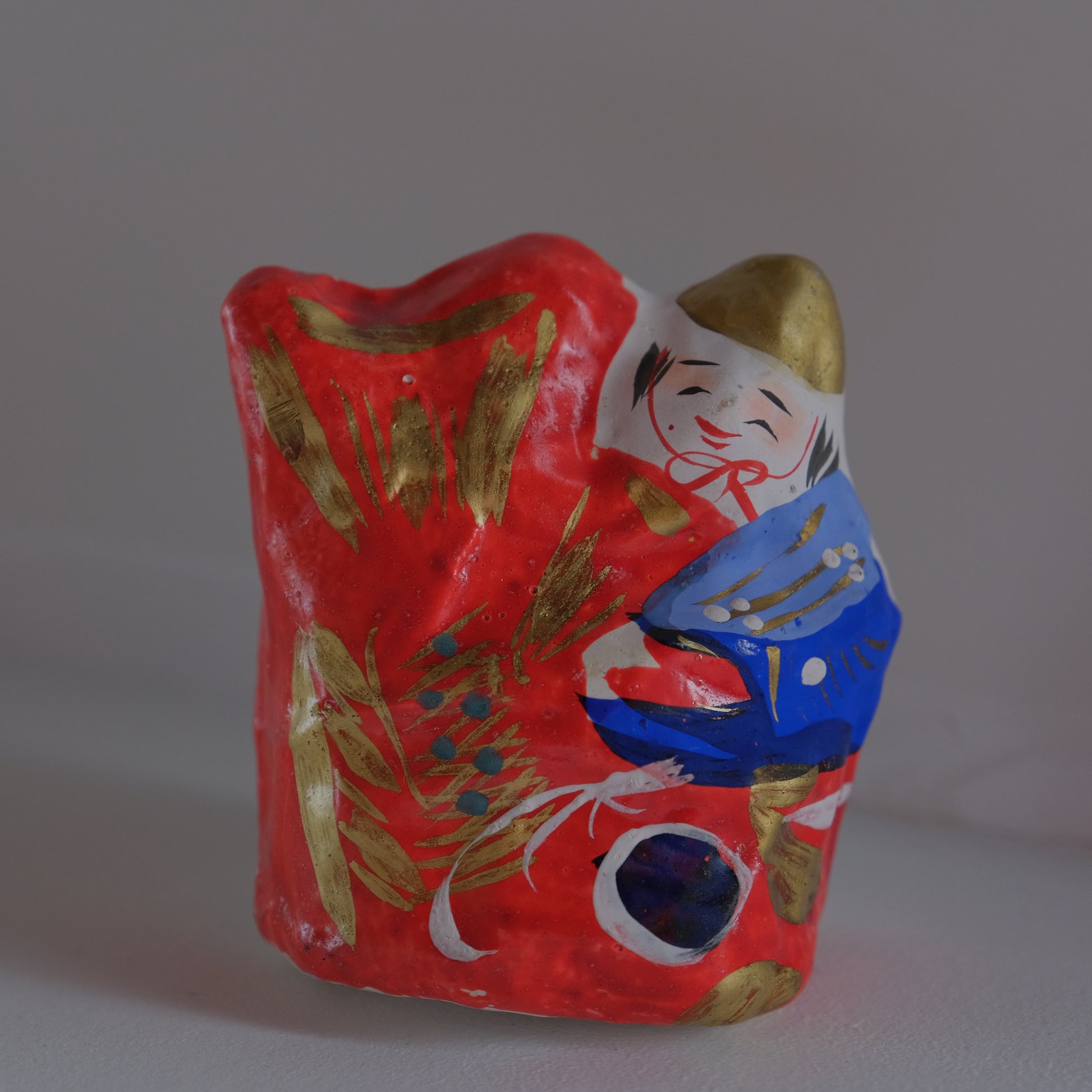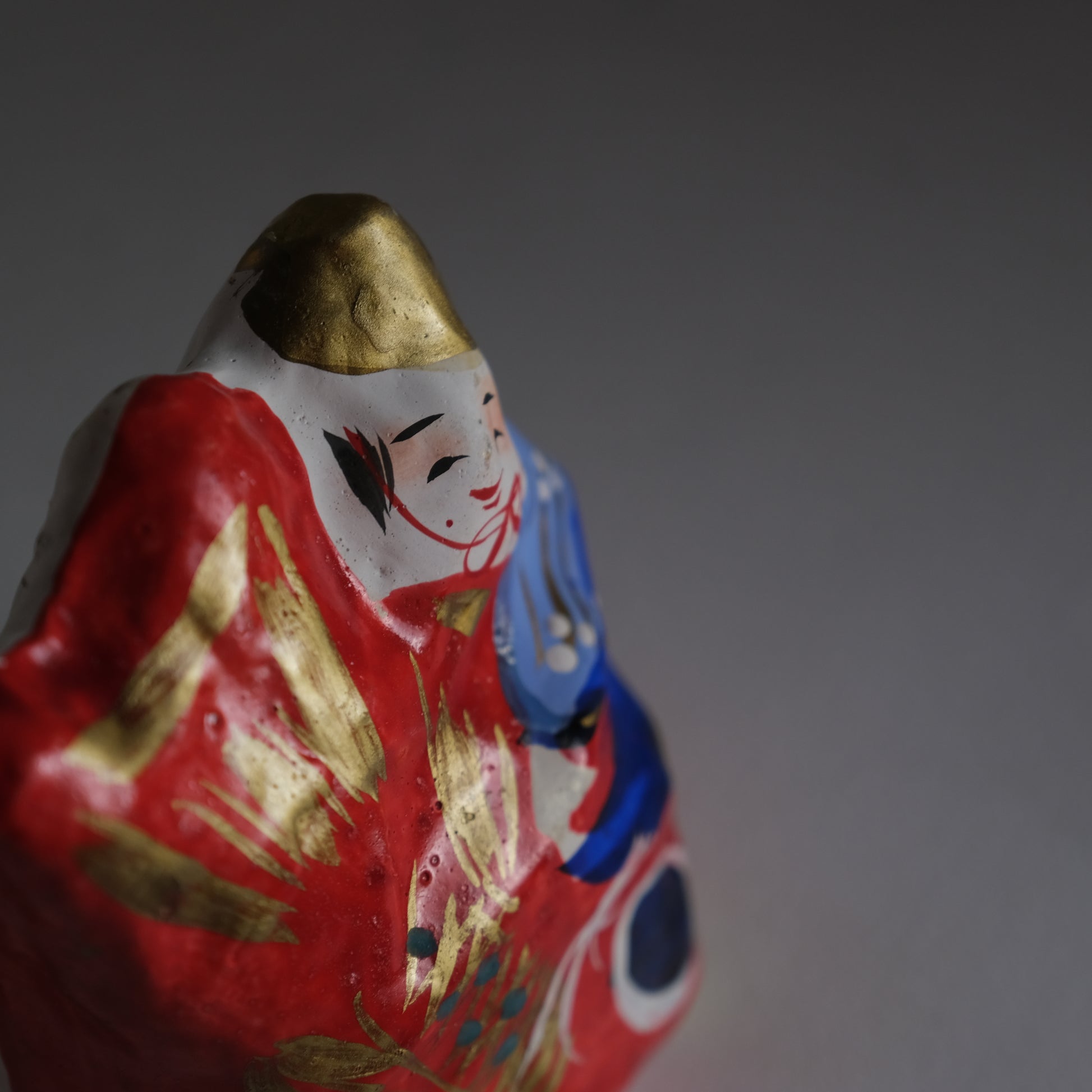 鯛を抱いた姿が愛らしい恵比寿さんの人形で、昭和34年に年賀切手として採用されたことでも知られています。百歳を超えても張子人形を作られていたフサさんの作られる張子に