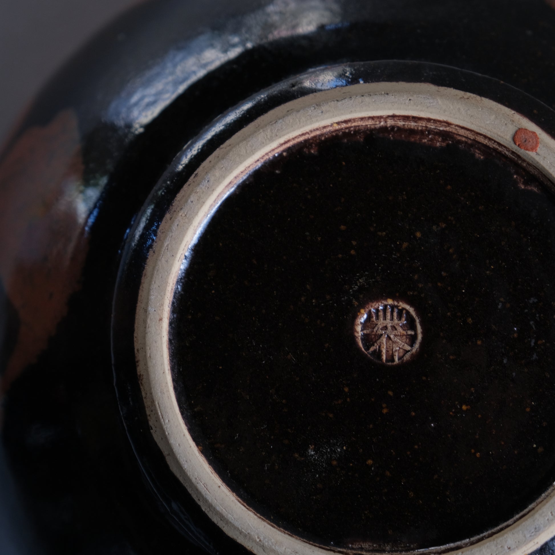 キレイに焼けた黒い肌に大胆に施された点打ち。ですがどこか上品に収まる仕上がりは同氏ならでは。長く河井寛次郎の内弟子として陶技を学び寛次郎亡き後は河井武一、博次に師事した椋木英三。河井寛次郎のスタイルを色濃く受け継ぐ陶工の一人です。