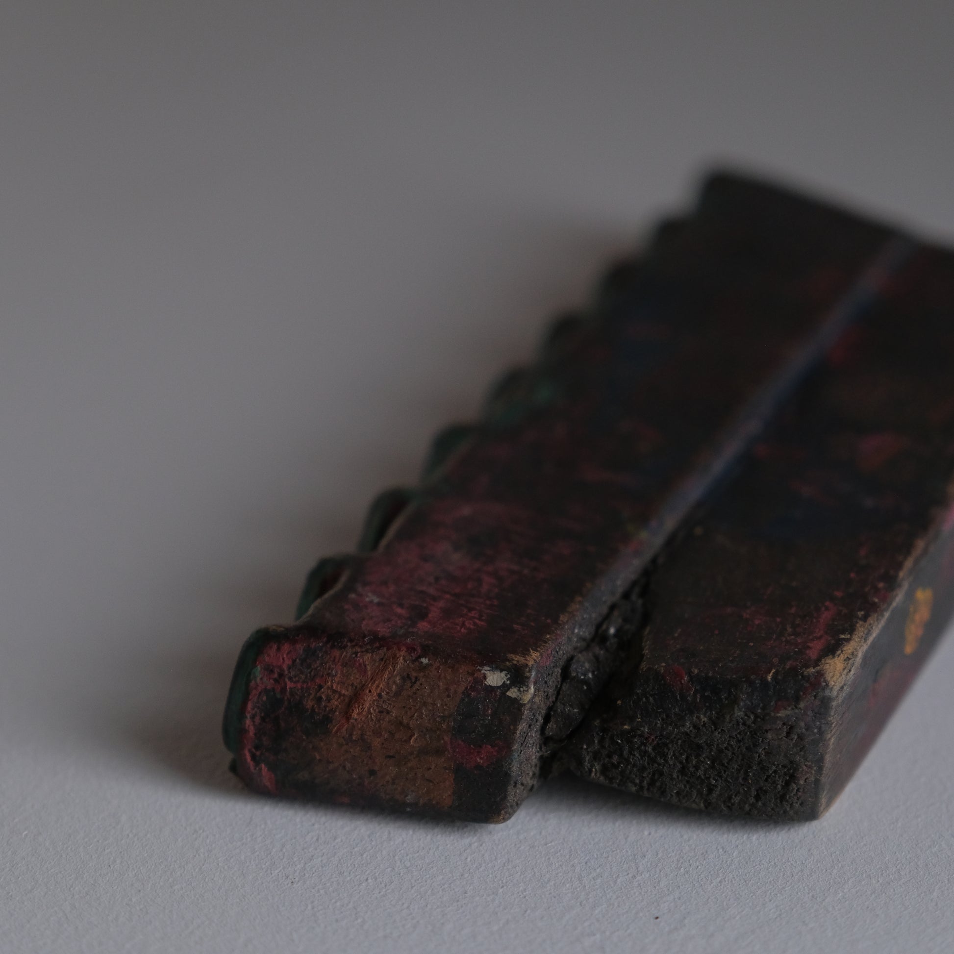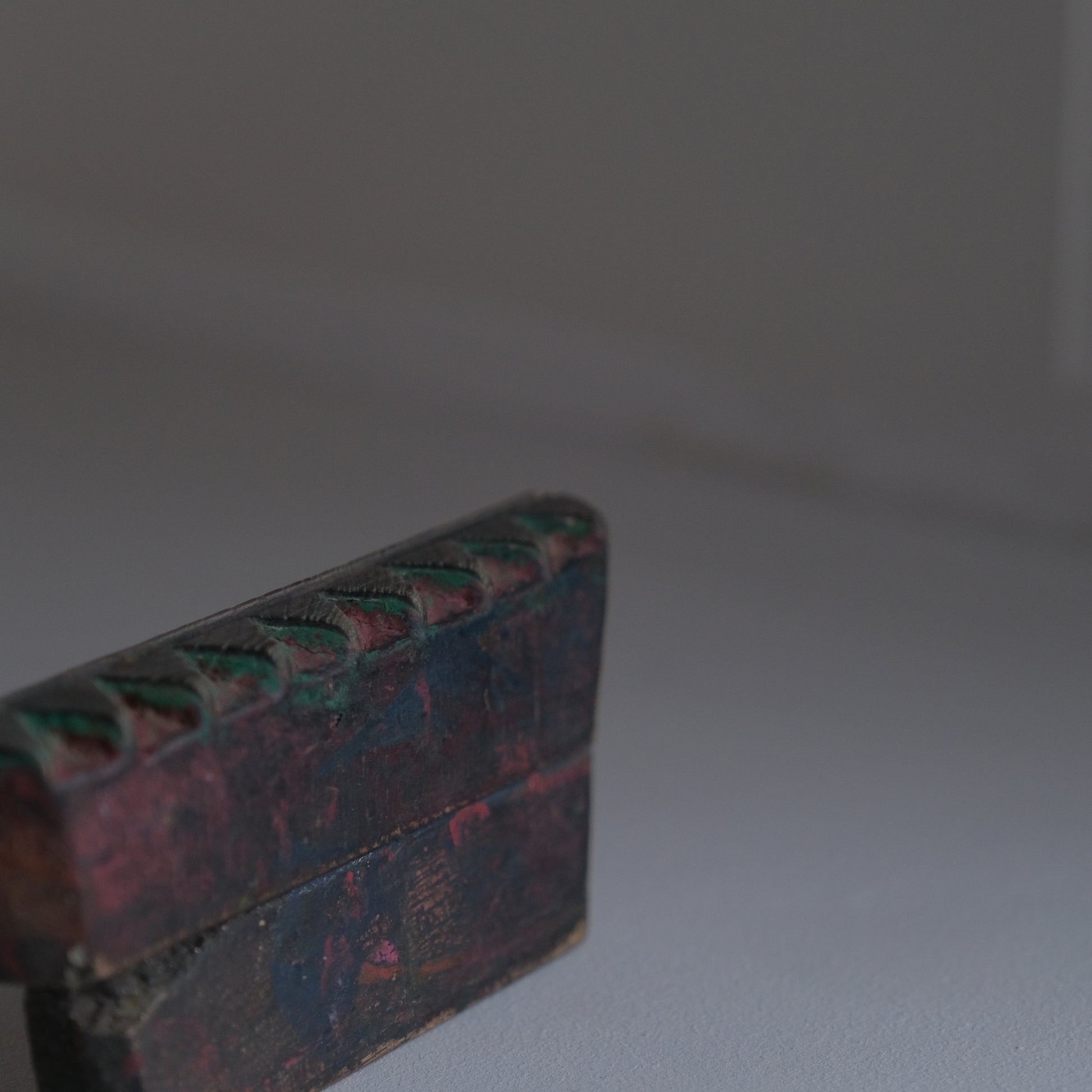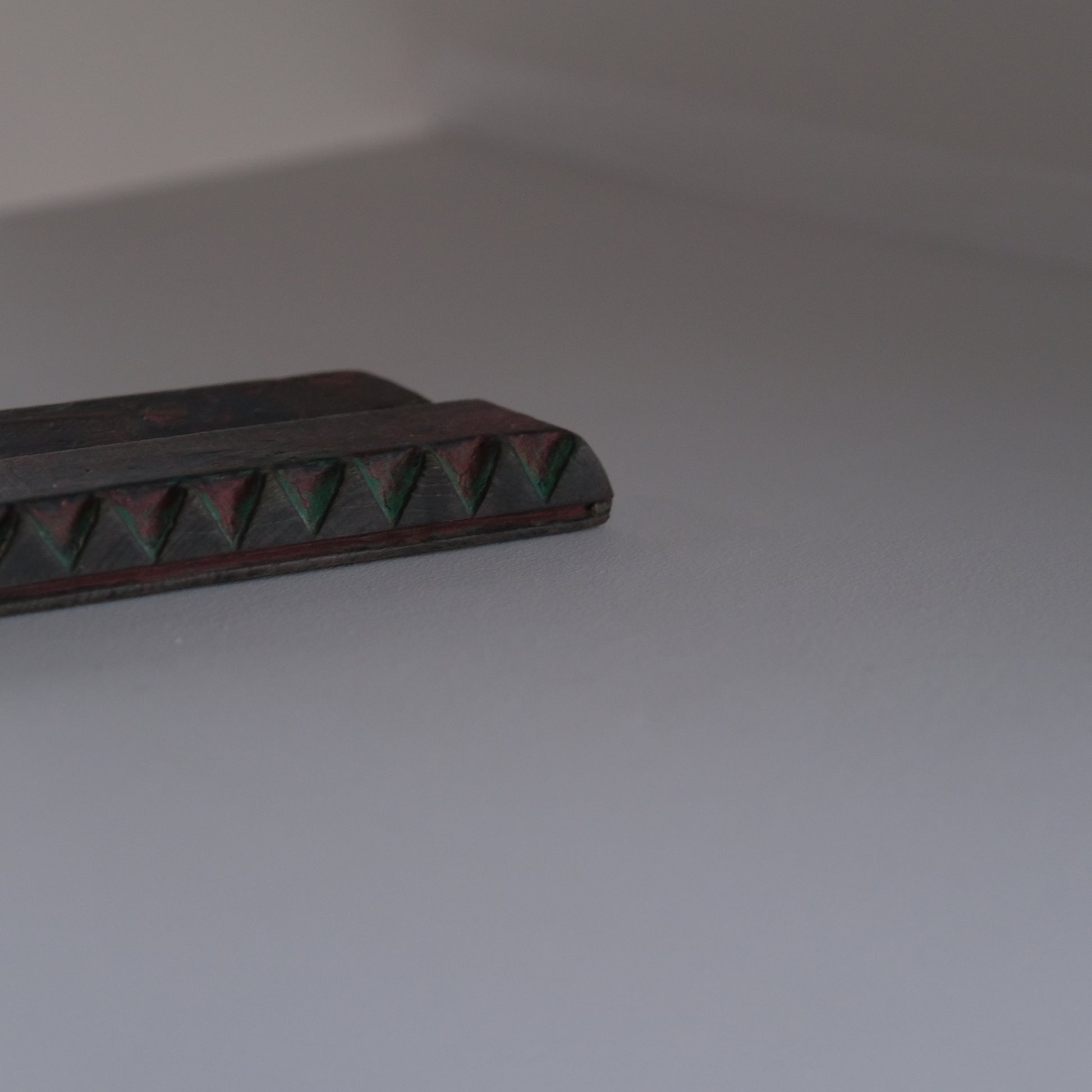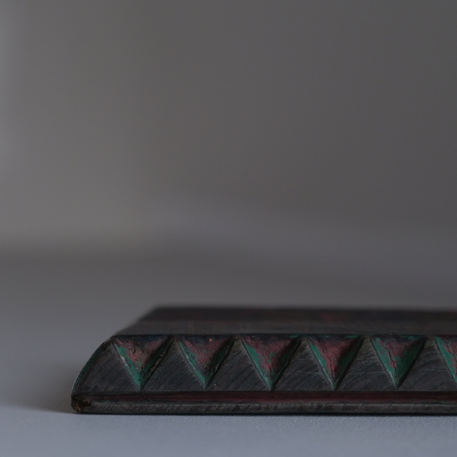 インドの伝統的な工芸であるブロックプリントに使用されていた古い手彫りの版木です。版木を布に押し当てそれを繰り返すことで連続した模様を生み出すインドの原始的なテキスタイル技法は驚くべきことに16世紀頃からほとんど変わらず現代まで続いており、その手仕事によって生まれる布はおおらかな手仕事の魅力に溢れています。